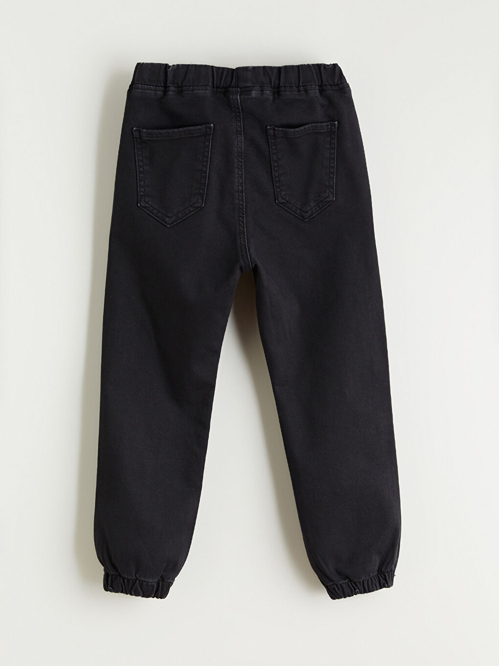 شلوار جوگر پسرانه از پارچه جین ساخته شده است. کمر و پاهای الاستیک دارند.