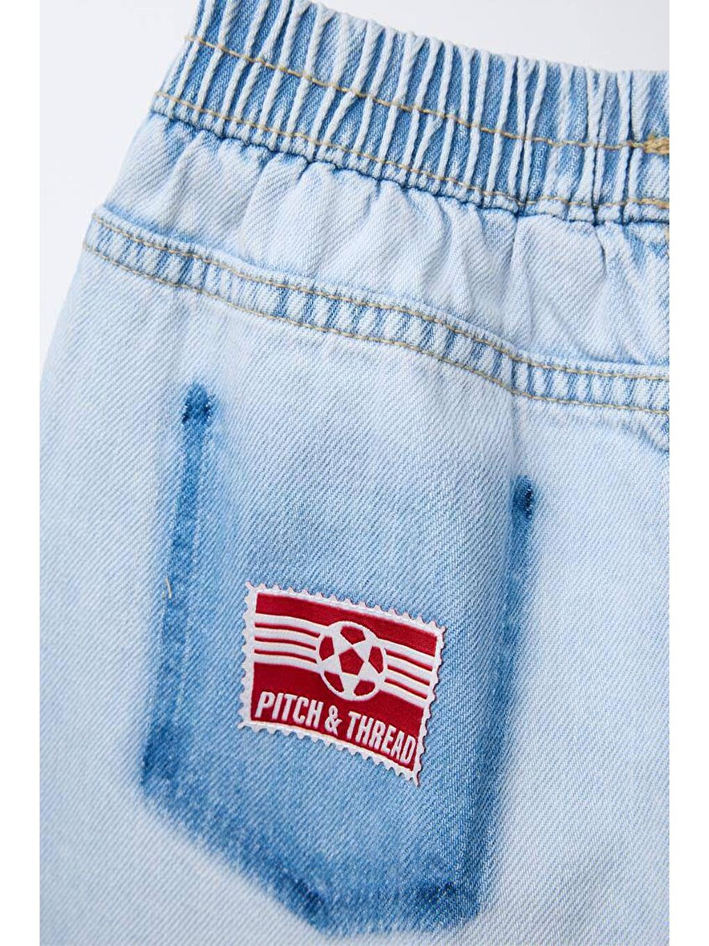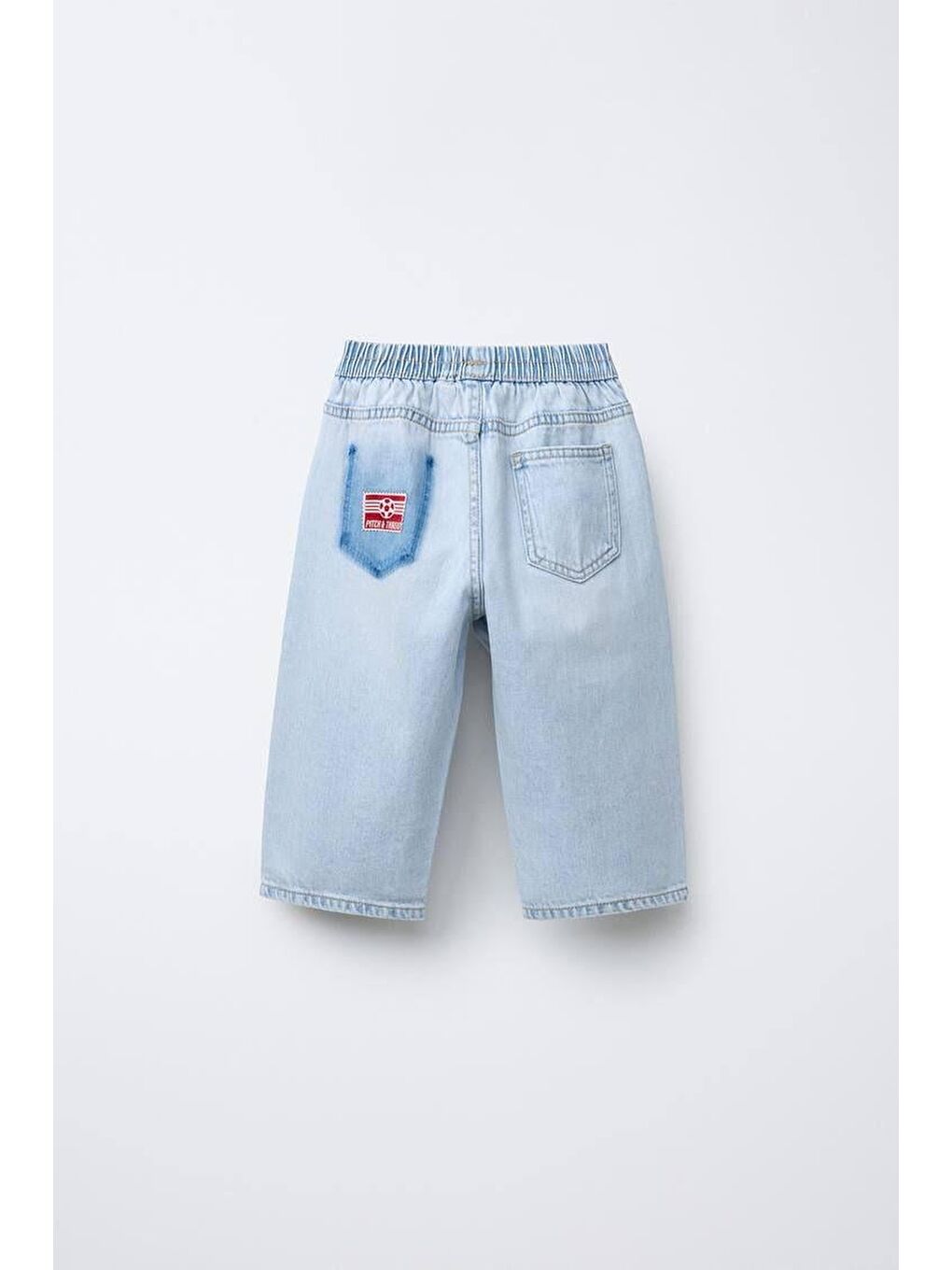 شلوار جین گشاد پسرانه نخی آبی روشن گلدوزی شده – کمر کشی