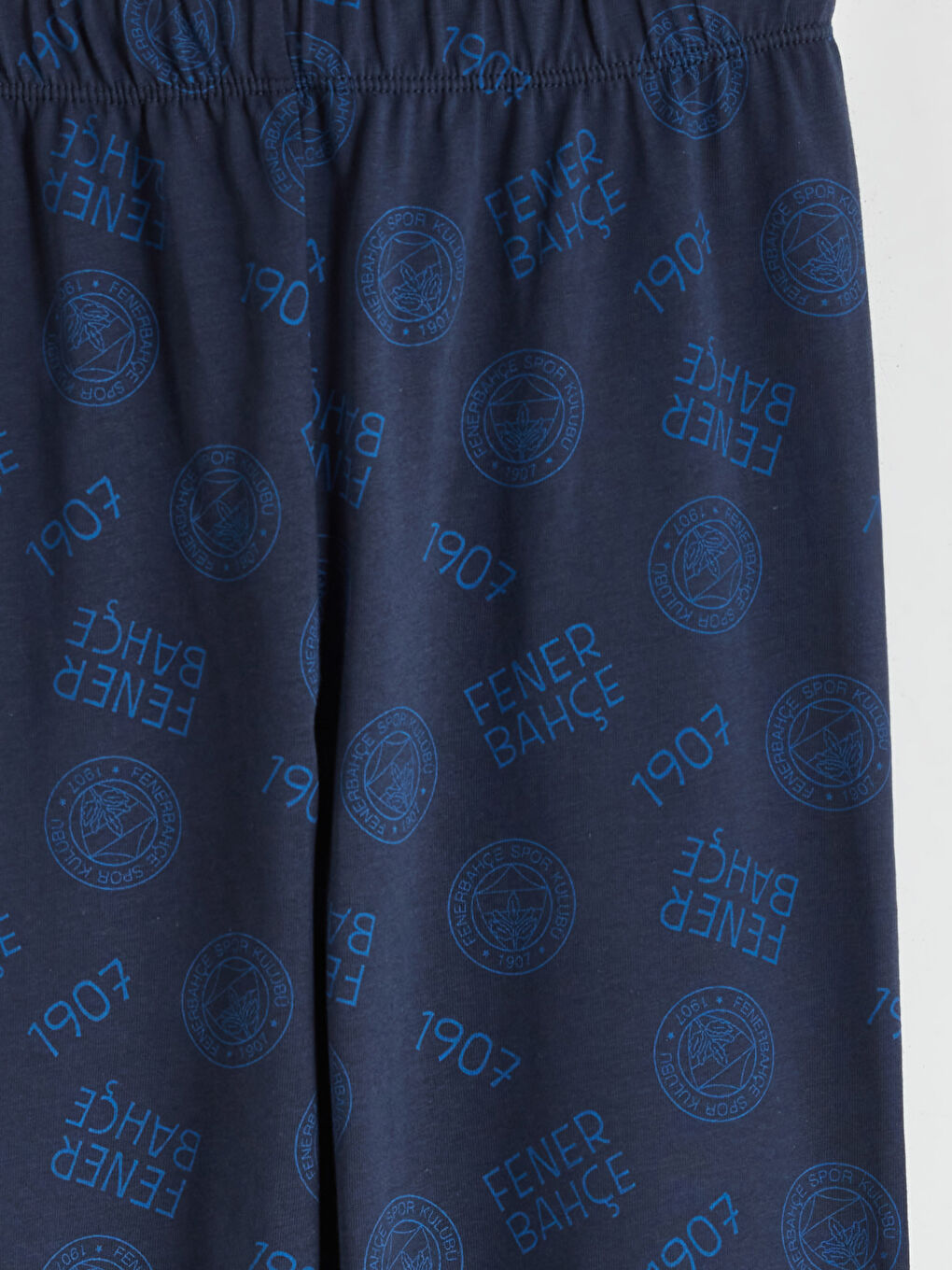 ست لباس خواب پسرانه دارای مجوز فنرباغچه از یک یقه خدمه، آستین بلند، رویه طرح دار و یک تکه پایین طرح دار با پاهای آجدار تشکیل شده است.