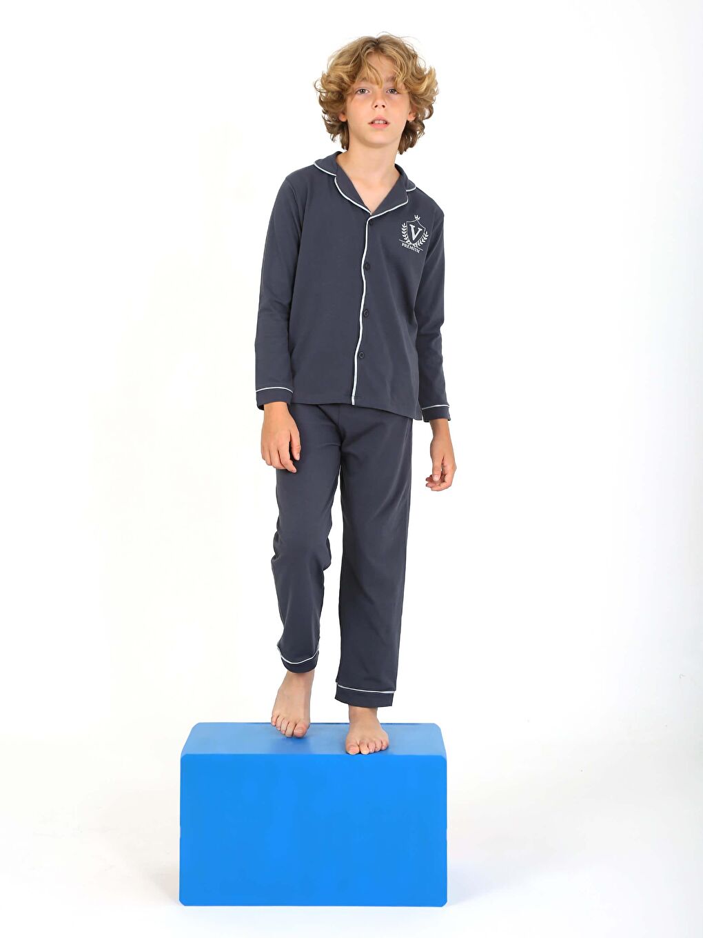 ست لباس خواب آستین بلند پسرانه با دکمه ساده VIP آنتراسیت
