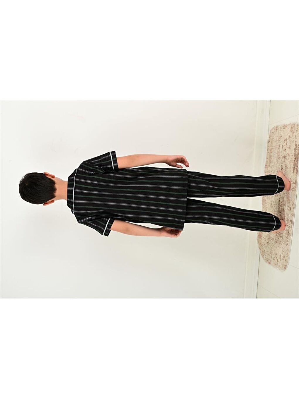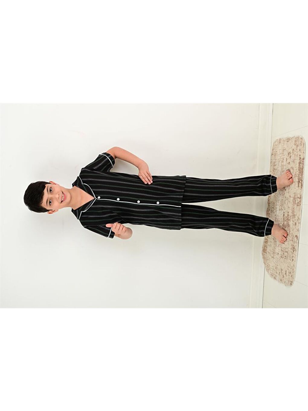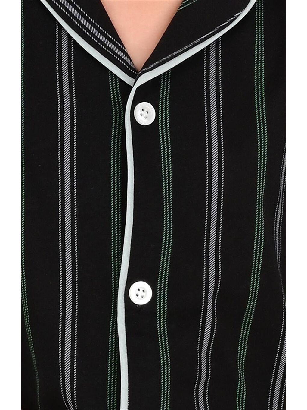 پارچه 100% پنبه ای ضد حساسیت. با یقه ژاکت، مدل بالاتنه دکمه دار آستین کوتاه و مدل پایین بلند، با الگوی شیک خود انتخاب شما خواهد بود که از پوشیدن آن در خانه و هنگام خواب لذت خواهید برد. سایز مدل: 11 سال. جزئیات دکمه با کیفیت بالا تناسب کامل. ست پیژامه دکمه دار پسرانه مدل اطلس – رنگ مشکی