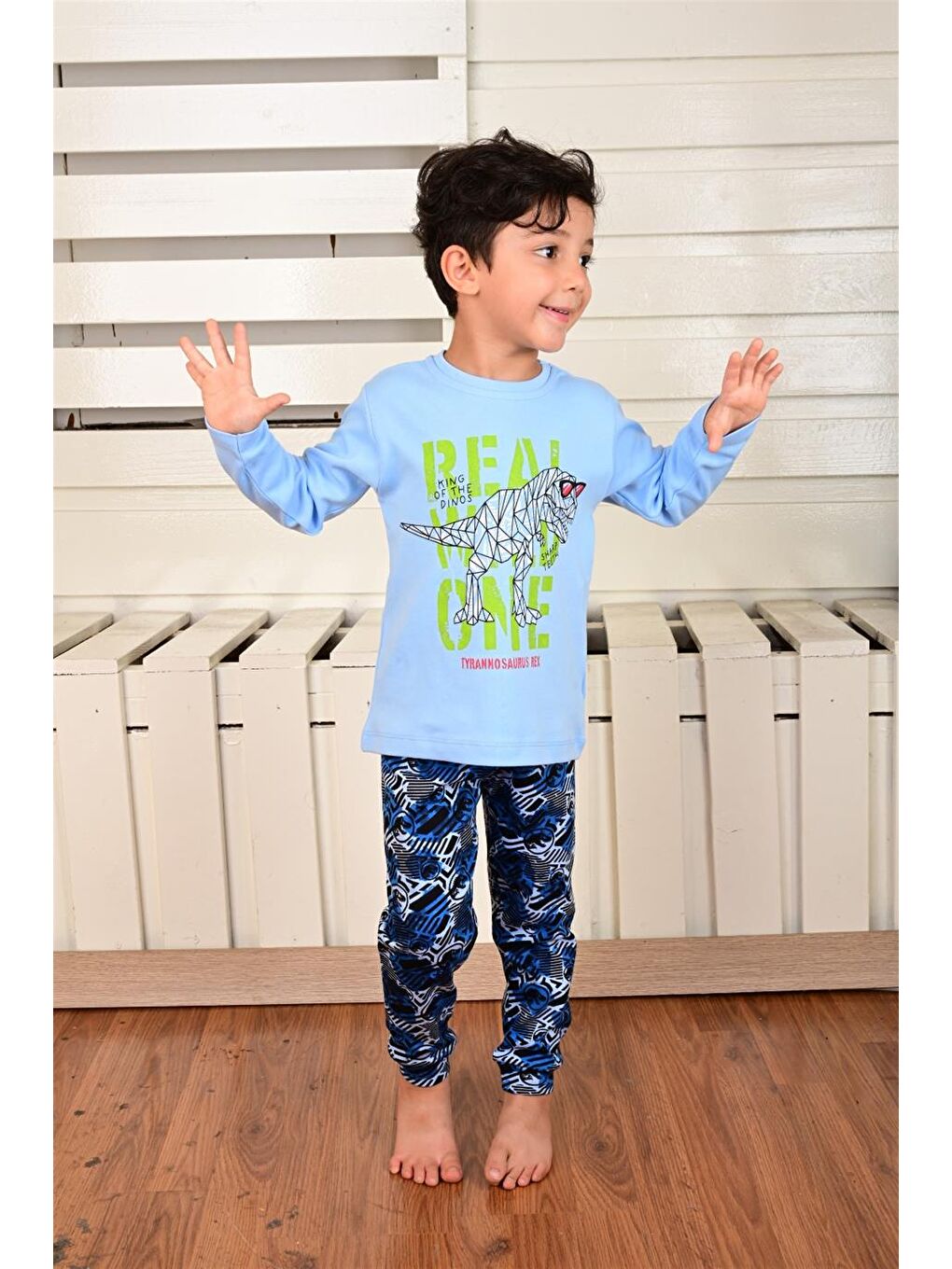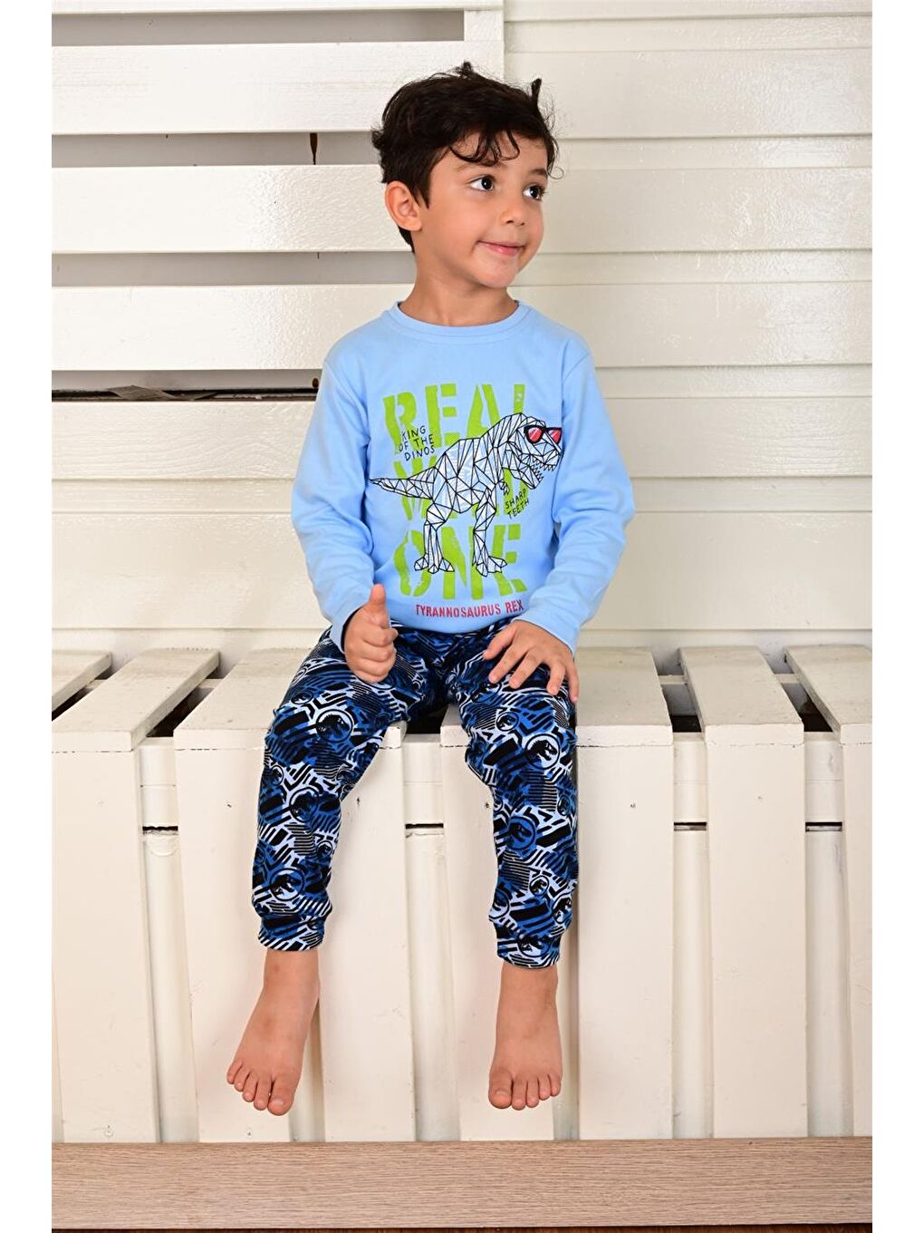 ست لباس خواب آستین بلند پسرانه Dino Rex Blue