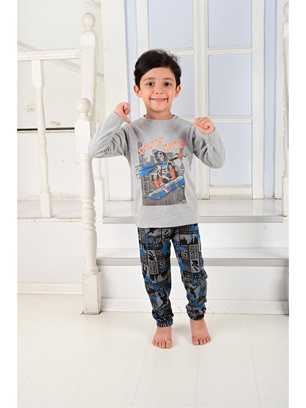 ست لباس خواب آستین بلند پسرانه اسکیت نینجا خاکستری