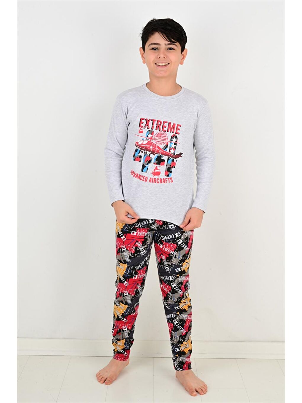ست لباس خواب پسرانه طوسی آستین بلند پنبه ای بادی زمستانه