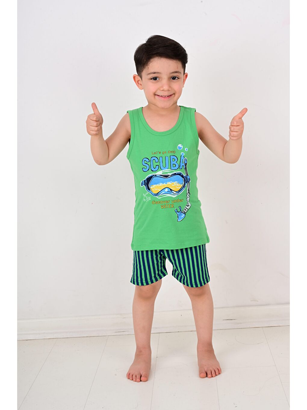 ست پیژامه آویزان پسرانه سبز اسکوبا آبی