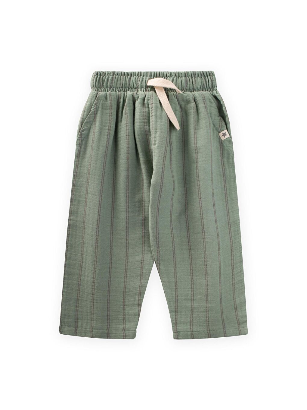 شلوار ماسلین، سبز دو راه راه، مناسب برای سنین ۱ تا ۷ سال