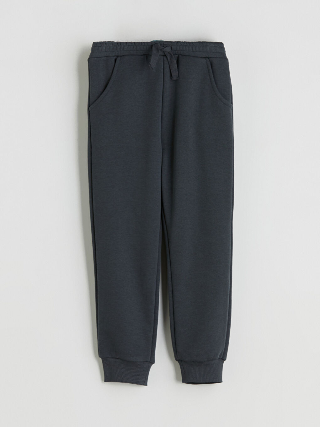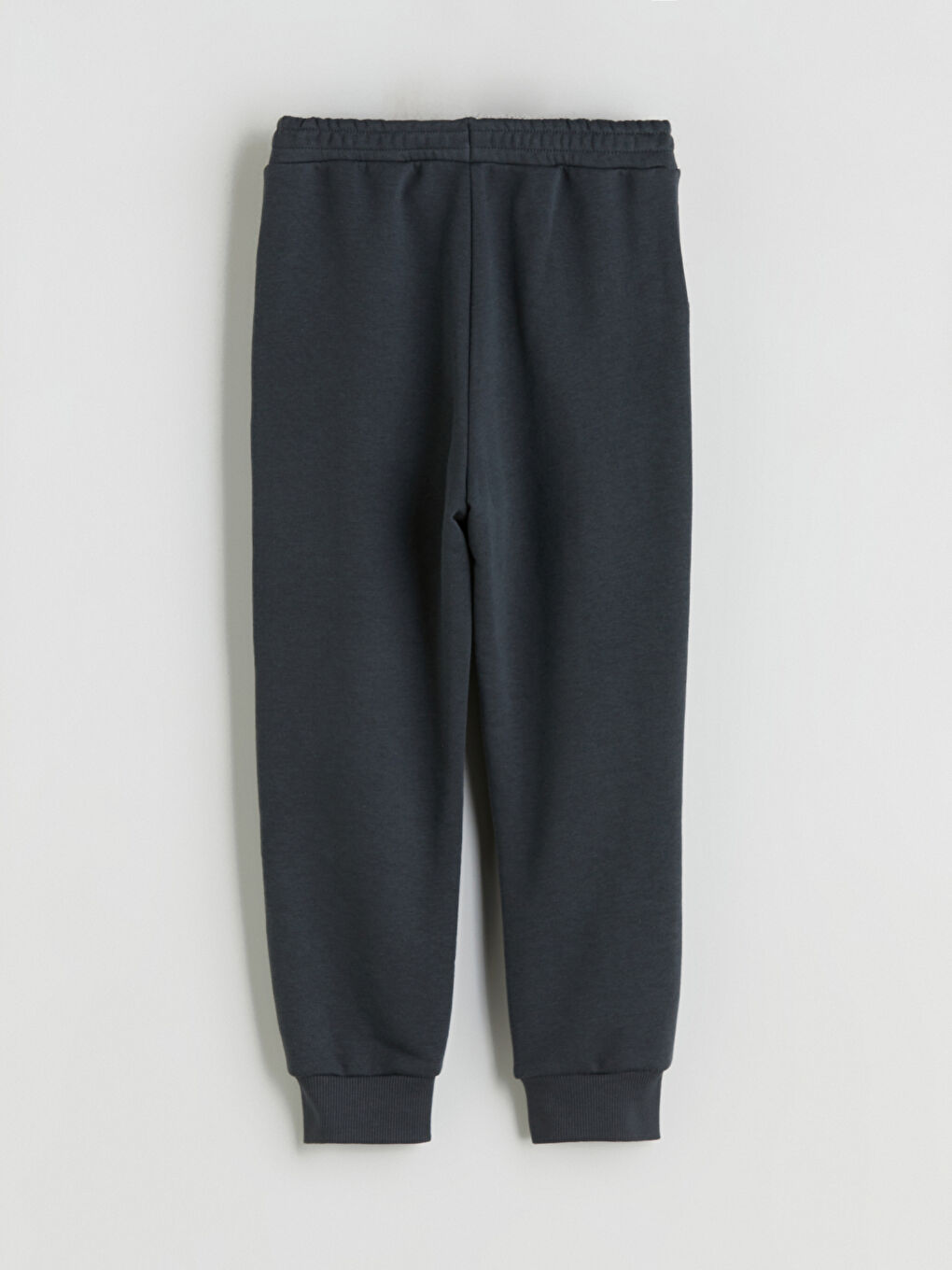 کت و شلوار پسرانه متشکل از یقه خدمه، آستینهای بلند، سویشرت چاپی و کتهای ورزشی آجدار، از پارچه 3 نخی 100% نخی ساخته شده است.