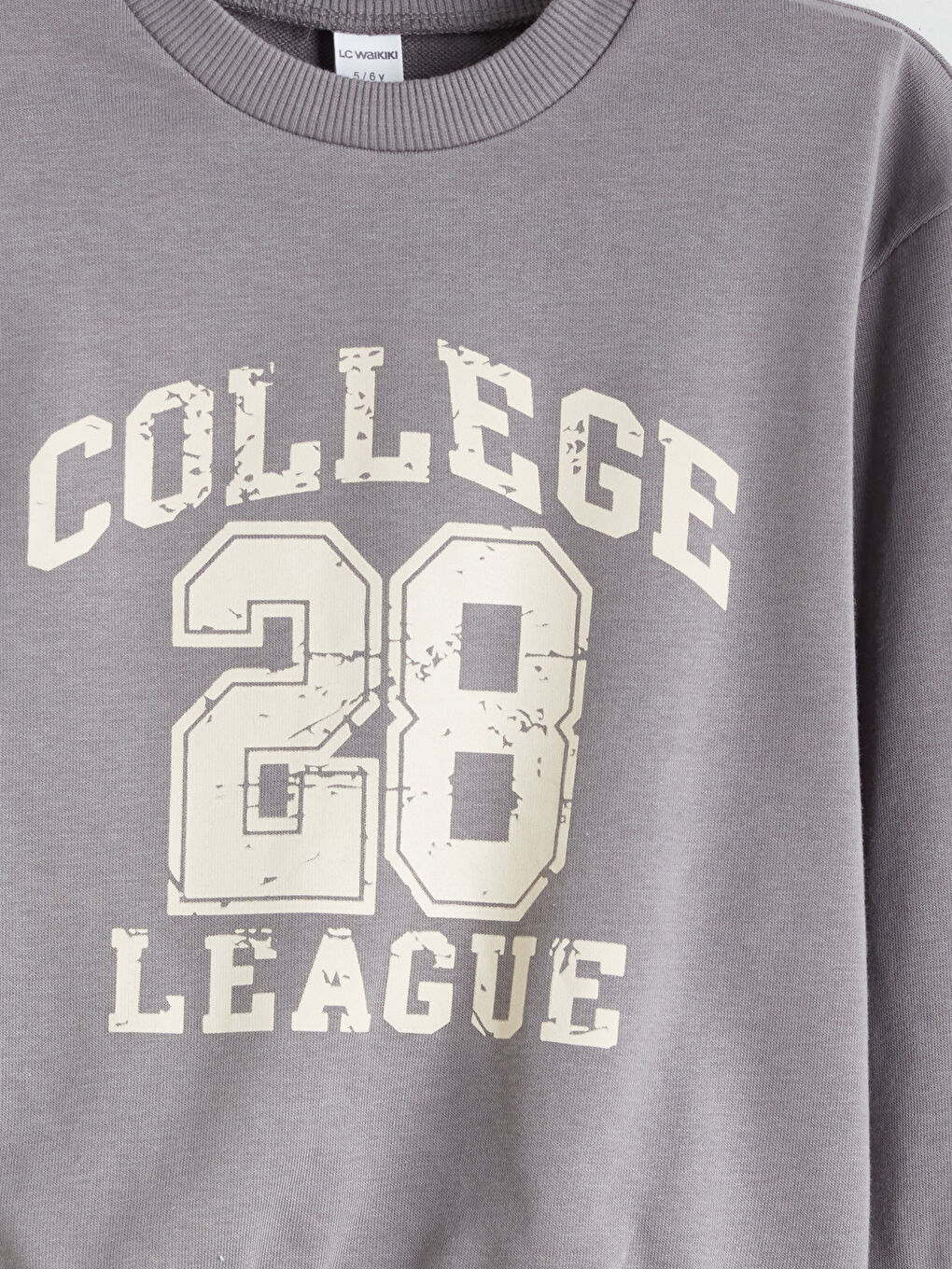 کت و شلوار پسرانه که از پارچه 3 نخی ساخته شده است، از یقه خدمه، آستین بلند، سویشرت چاپ شده و ته لباس ورزشی با سرآستین های آجدار تشکیل شده است.