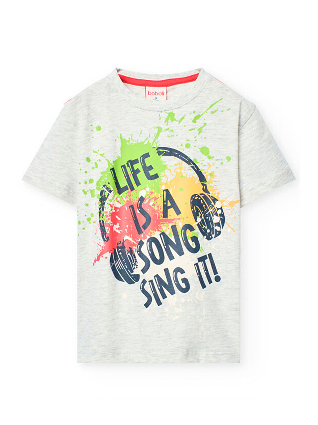 این ست تیشرت و شورت بافتنی پسرانه یک انتخاب عالی برای روزهای گرم است. این تی شرت خاکستری روشن است و دارای چاپی جالب، رنگارنگ و چشم نواز است که عبارت “زندگی یک آهنگ است، آن را بخوان!” همراه با گرافیک مربوطه شورت نارنجی پر جنب و جوش حسی بازیگوش می بخشد. علاوه بر این، محصول ما از یک ماده نرم و سبک ساخته شده است که برای راحتی در حین بازی ایده آل است. این مجموعه در سایزهای 4 تا 16 موجود است که آن را به گزینه ای همه کاره و مدرن برای کوچولوها تبدیل می کند.