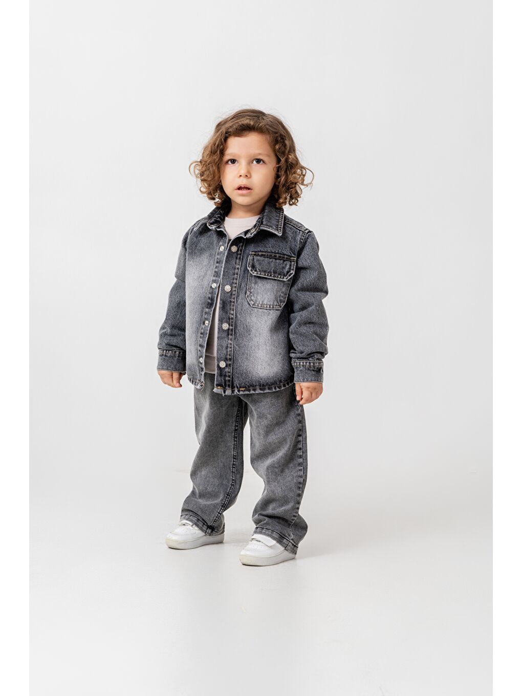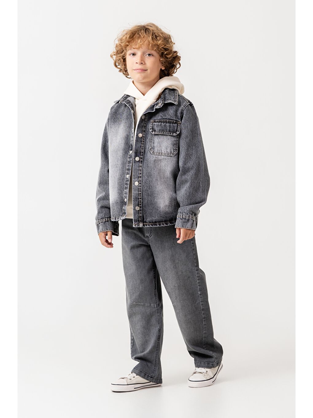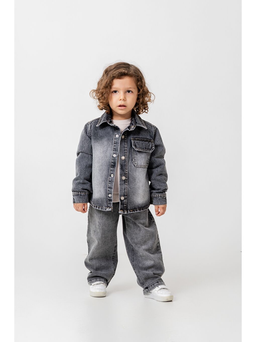 ست کت و شلوار جین پسرانه نخی خاکستری