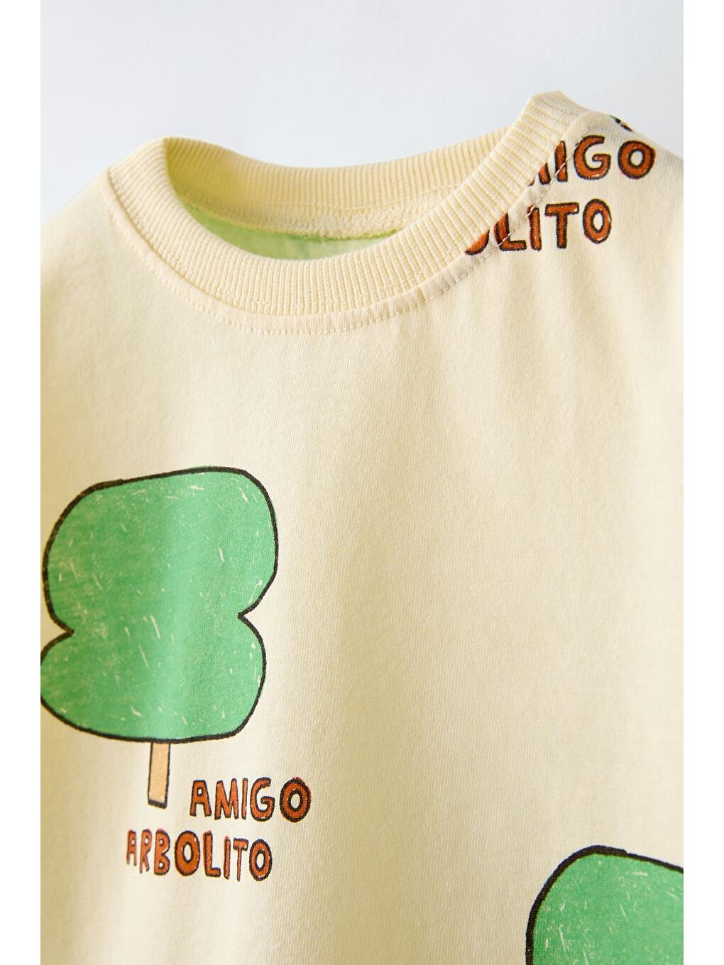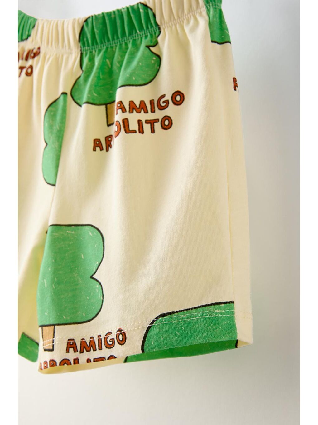 ست تیشرت و شلوارک طرحدار درختی زرد نخی بچگانه، مناسب برای هر دو جنس – ست دو تکه تابستانی