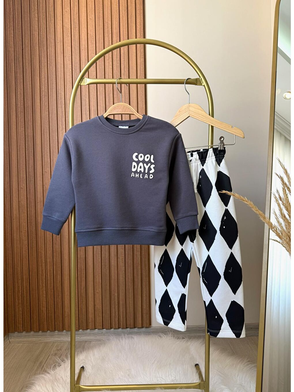 ست سویشرت طرحدار برمودا و نخی بچهگانه ترکیبی یونیسکس با طرح مشکی و چاپ متن