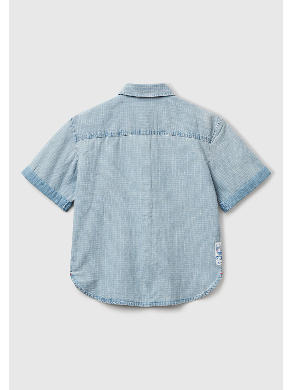 پیراهن جین روشن پسرانه آبی با جیب جلویی با آستین کوتاه