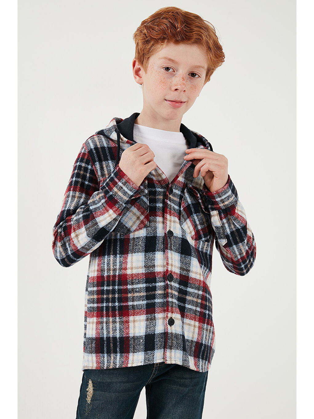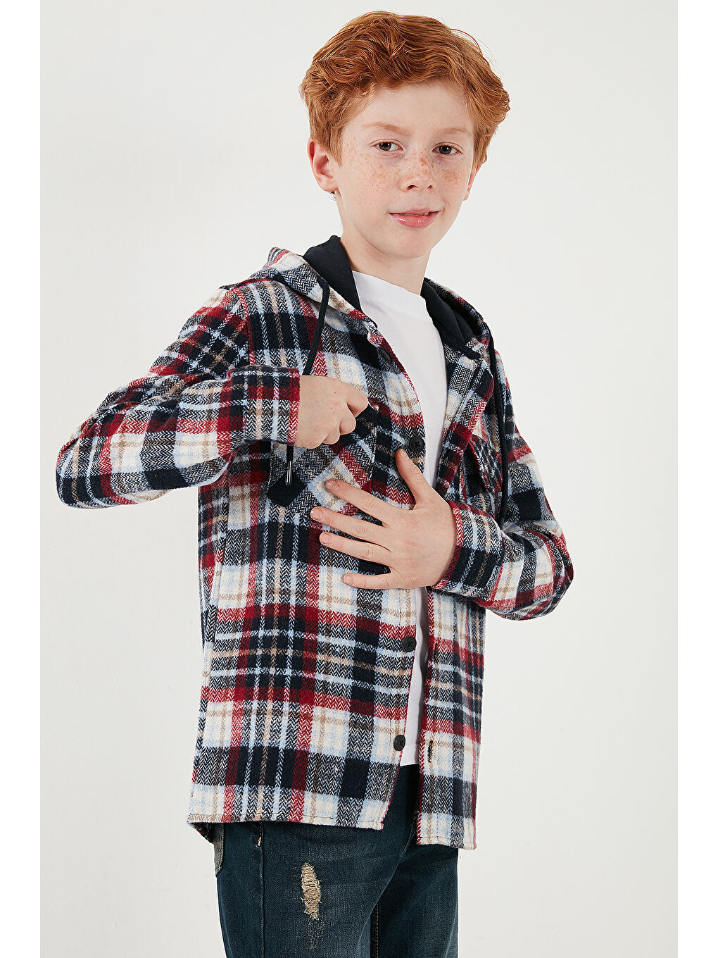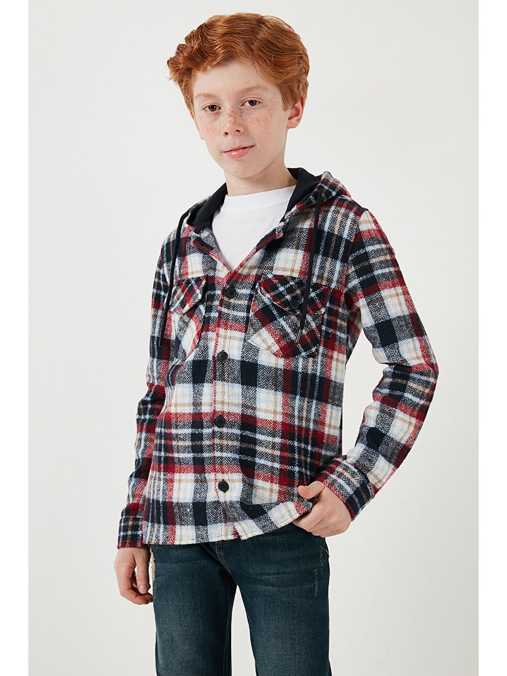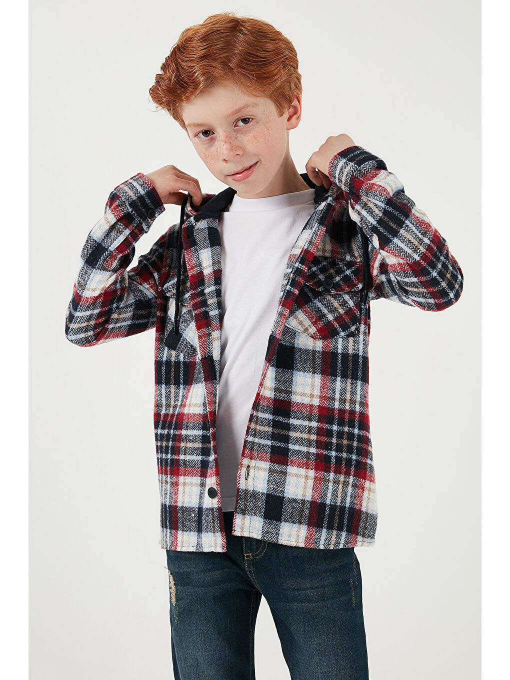 پیراهن مردانه زمستانی طرح چوب جنگلی، کلاه دار سرمهای، دو جیب، چهارخانه، CF24W81778