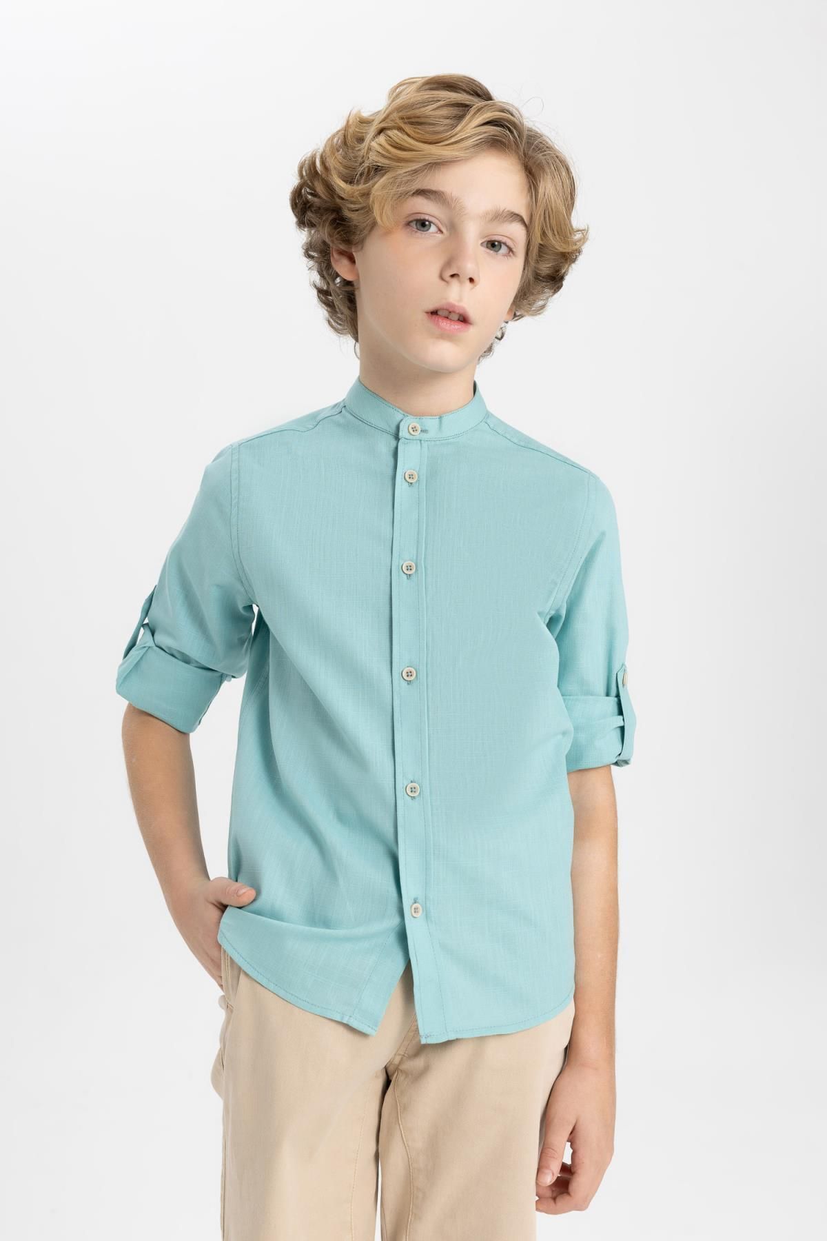 دفاکتو پیراهن کتانی یقه ایستاده پسرانه مدل آستین بلند Z1035a624sm