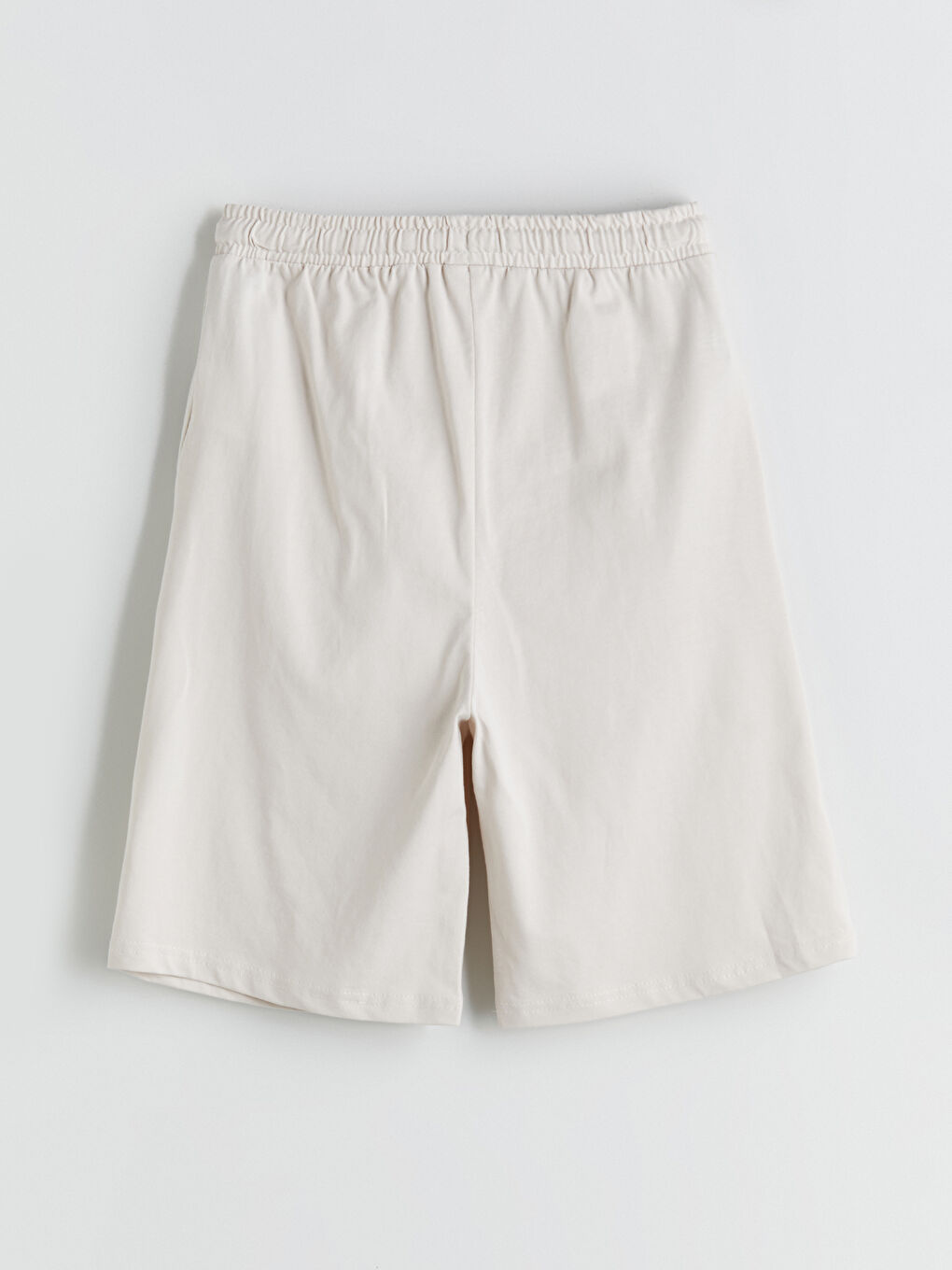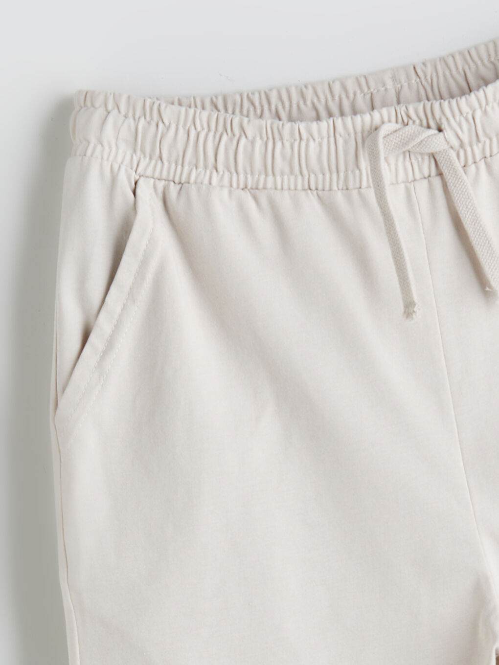 شلوارک کمر کشی، ساخته شده از پارچه نخی. طرح جیب.