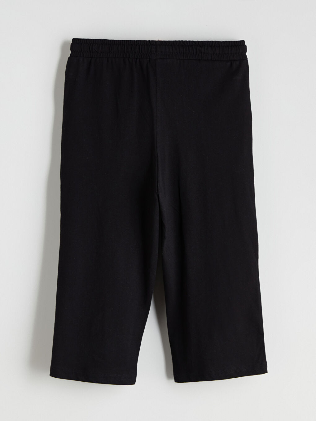 شلوار کاپری پسرانه با کمر کش دار و بند کشی قابل تنظیم، جیب های کناری و پاهای صاف.