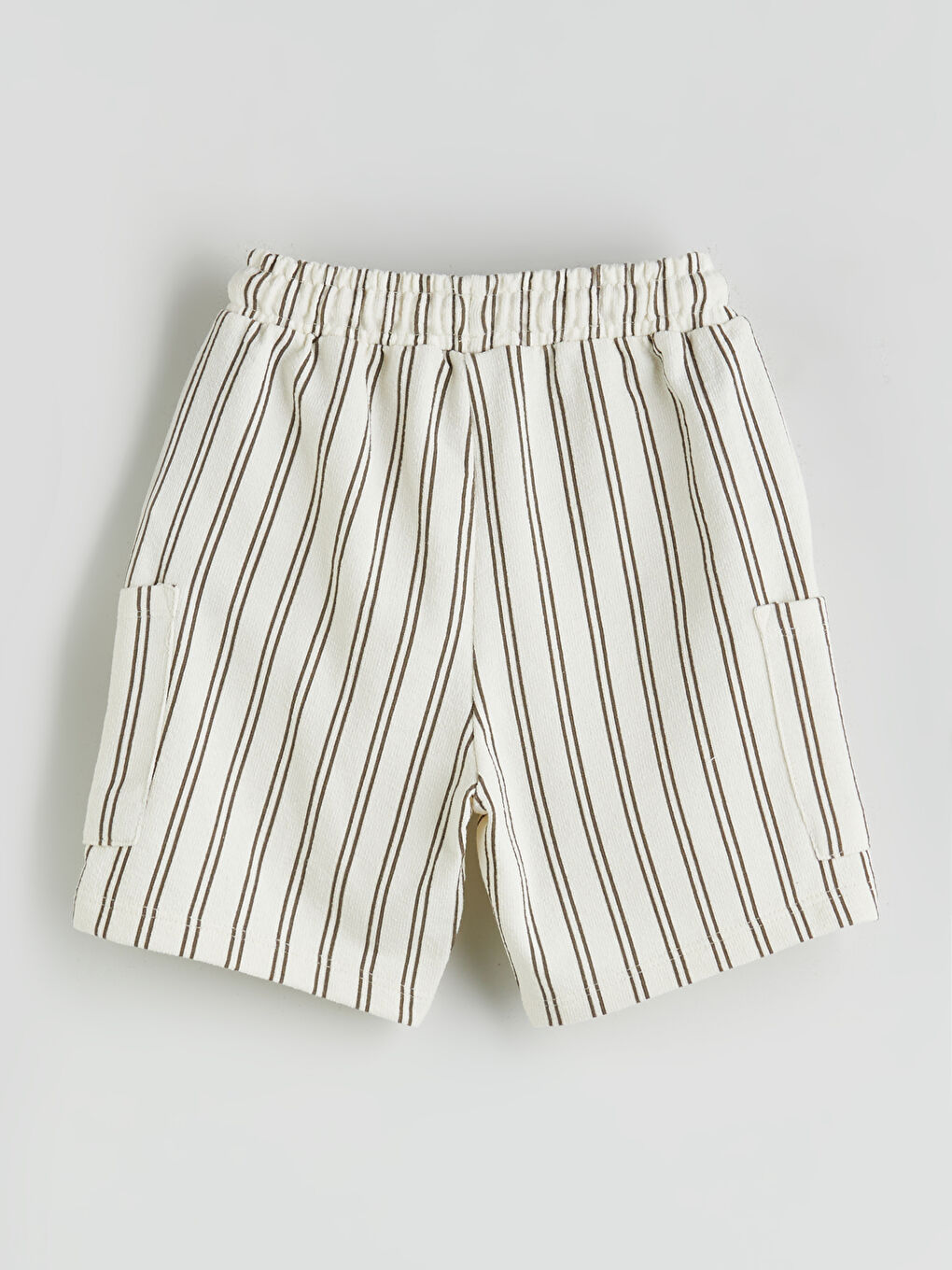 شورت پسرانه راه راه دور کمر الاستیک بژ