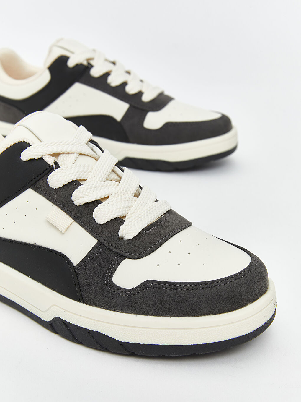 کفشهای کتانی پسرانه دارای طراحی پانلشده، جعبه پنجه سوراخدار و زبانه کششی در پشت و بسته شدن توری هستند.