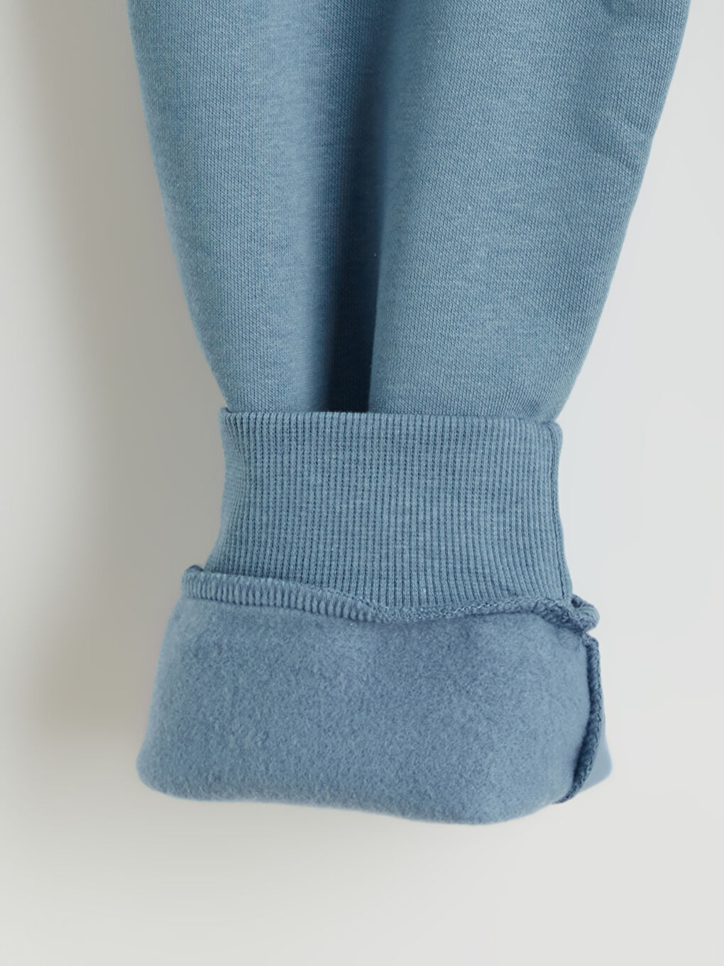 شلوار ورزشی پسرانه مدل جاگر از پارچه ضخیم سه‌لایه ساخته شده است. این شلوار دارای کمر کشی با بند، جیب‌های کناری و لبه‌های چین‌دار است.