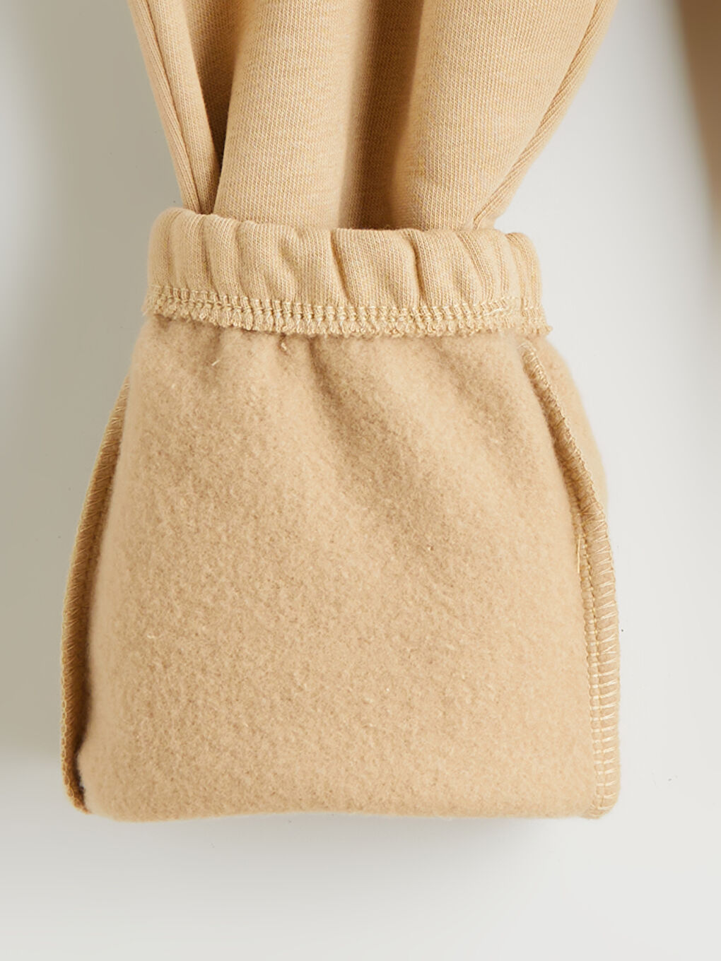 شلوار ورزشی دو تکه با کمر و سرآستینهای کشی از پارچهی سه نخِ برجسته ساخته شده است.