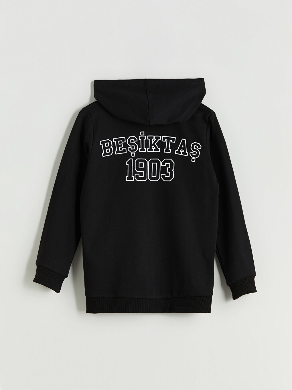 این لباس ورزشی پسرانه که از پارچه دو نخی ساخته شده است، از رویه کلاه دار زیپ دار و پایین لباس ورزشی آجدار تشکیل شده است. دارای طراحی دارای مجوز بشیکتاش و یک جیب کانگورویی است.