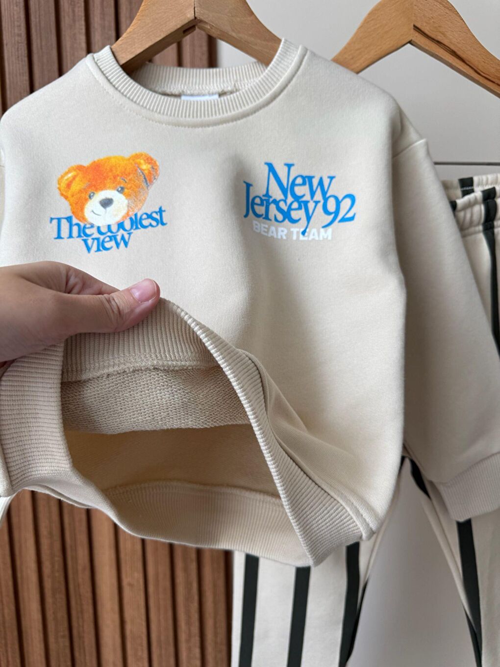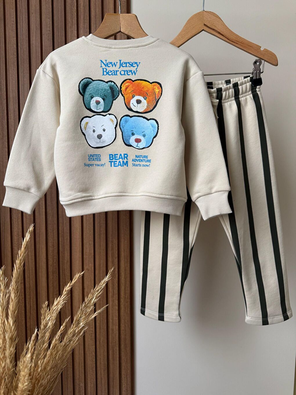 ست سویشرت و شلوار ورزشی راه راه طرح خرس بژ ترکیبی برای پسران