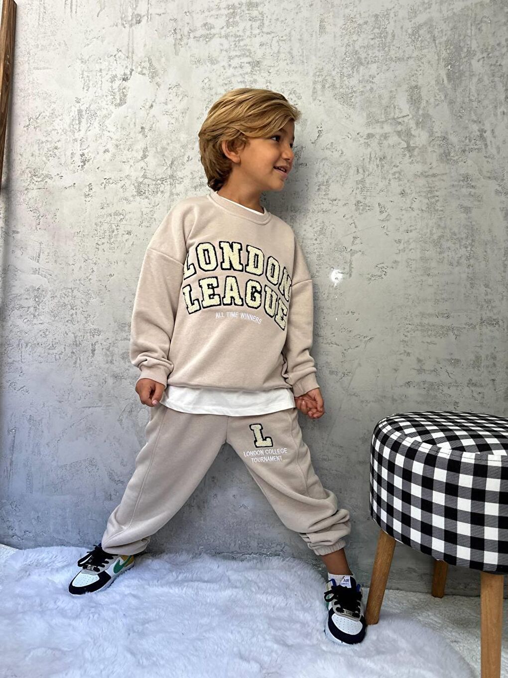 لباس ورزشی طرحدار لیگ لندن پسرانه بژ نخی