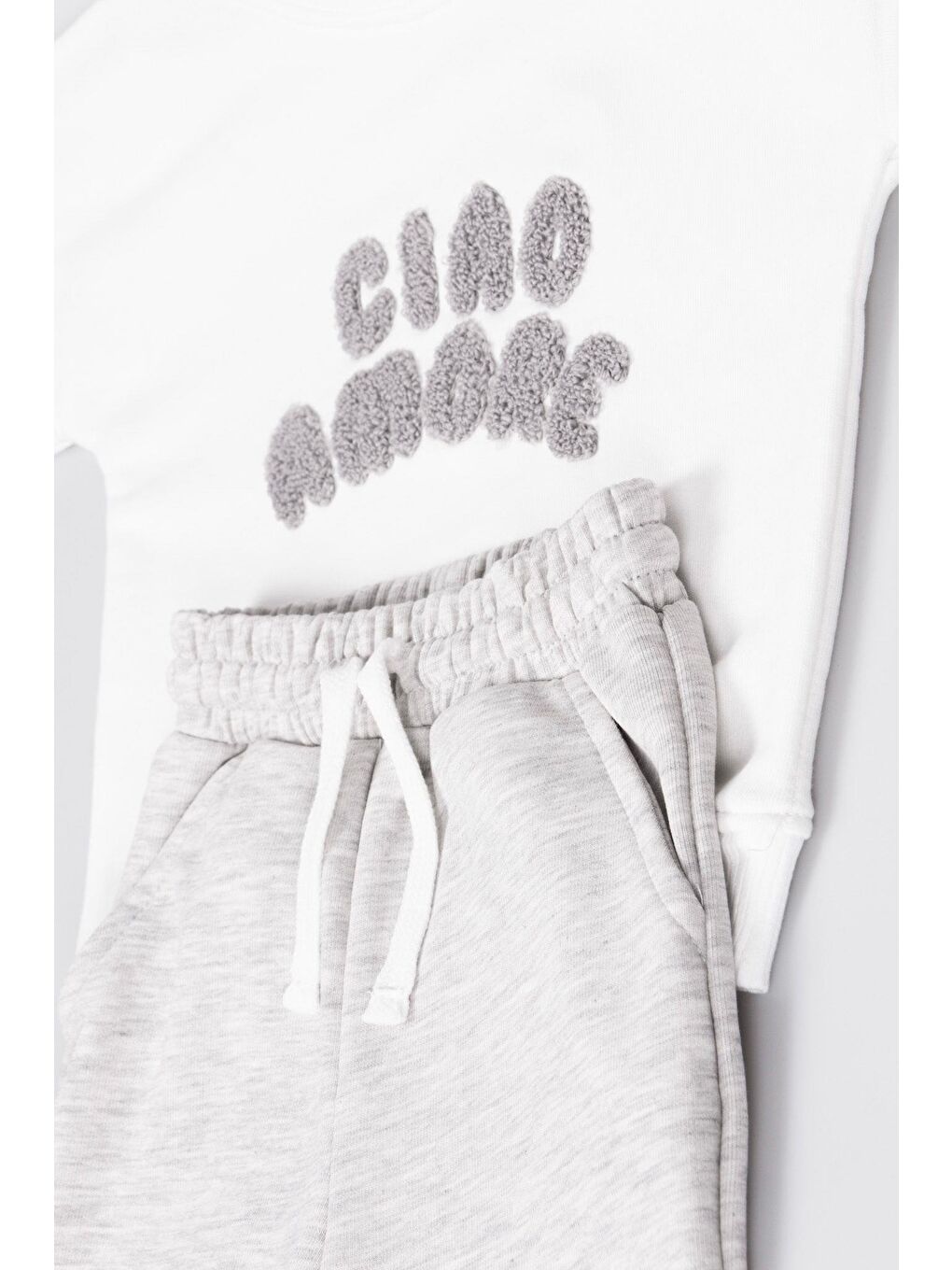 ست سویشرت و گرمکن خاکستری نخی کودک Ciao Amore سفید – سبک راحت و غیررسمی