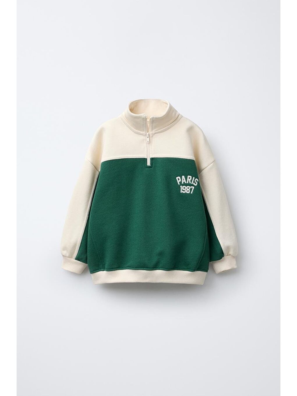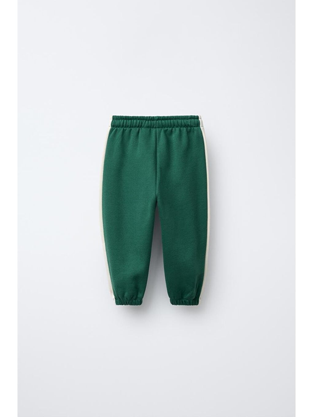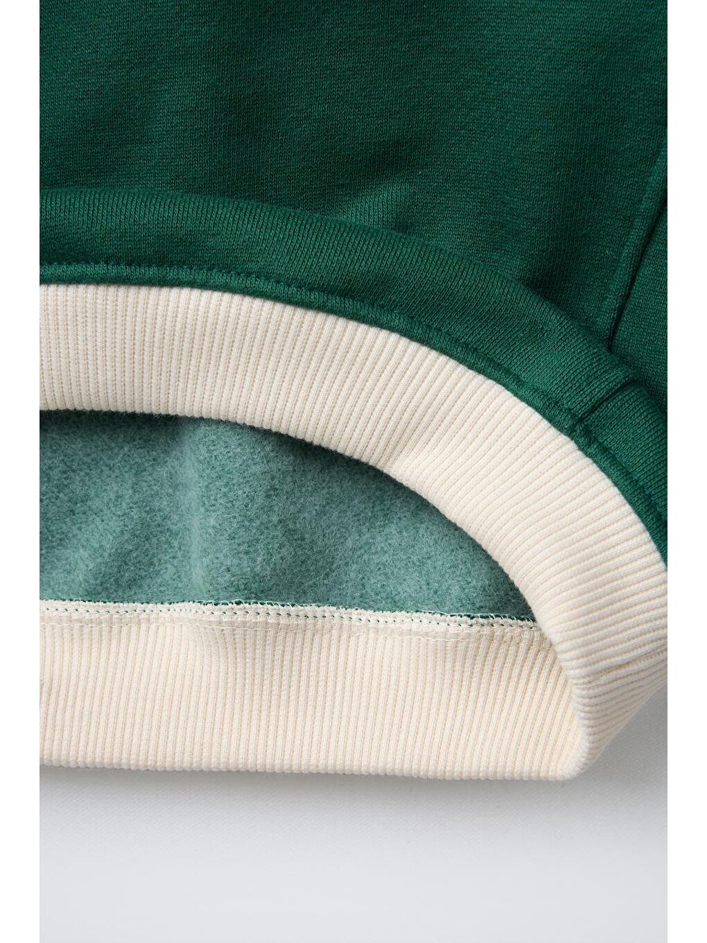 ست سویشرت زیپدار سبز نخی مخلوط و راه راه کناری پسرانه