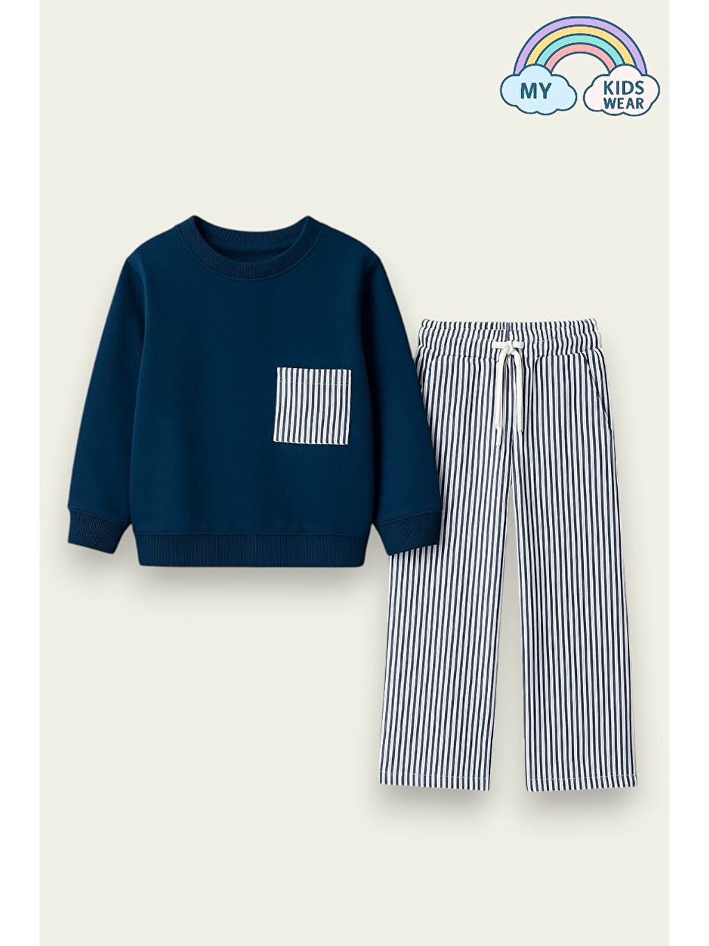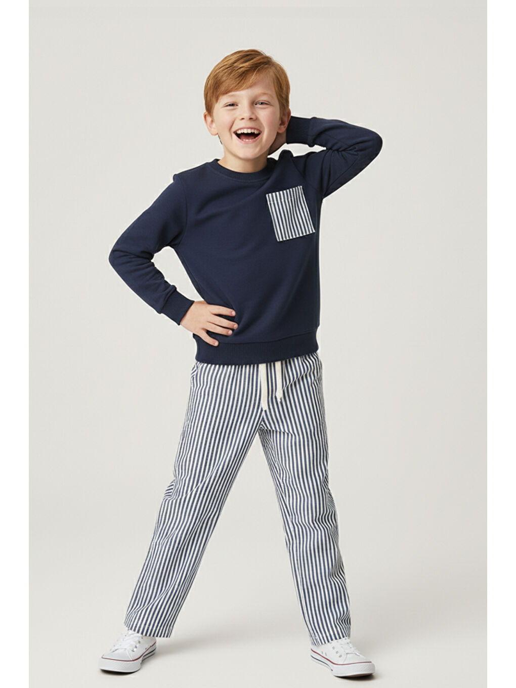 ست لباس ورزشی جیب‌دار پسرانه سرمه‌ای رنگ، مناسب برای ۲ تا ۱۰ سال