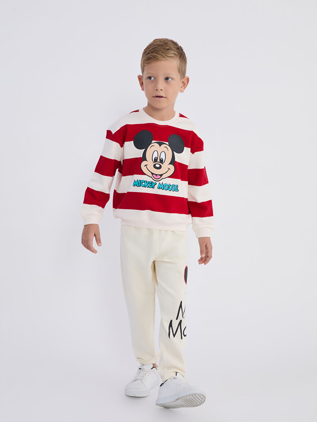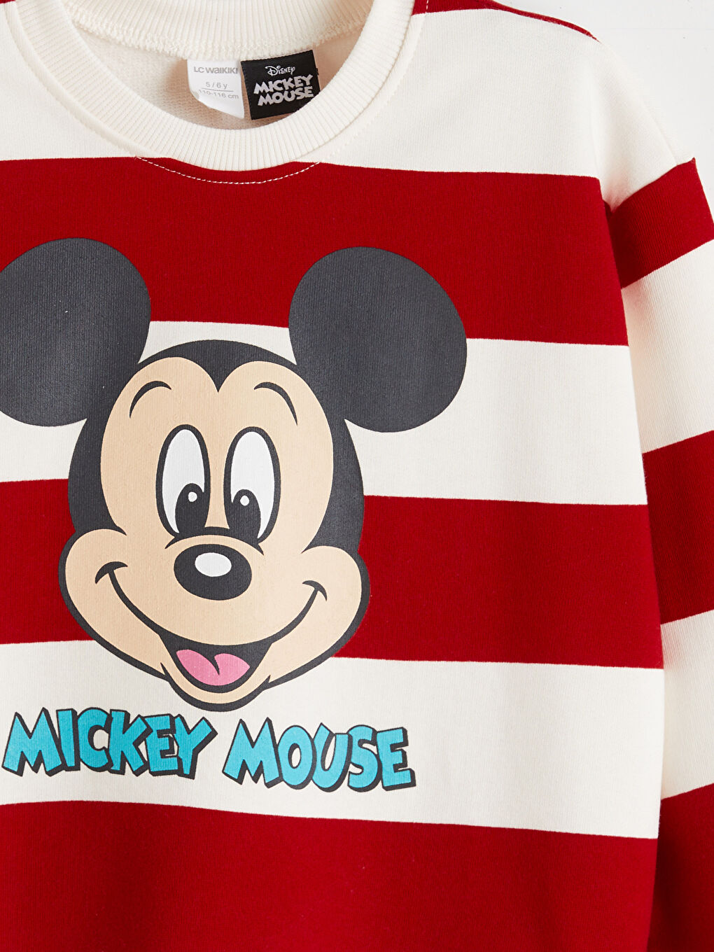این سویشرت پسرانه دارای مجوز میکی موس، یقه گرد و آستین بلند است. پارچه راه راه آن چاپی است و آستین ها و لبه آن کشبافت است.
