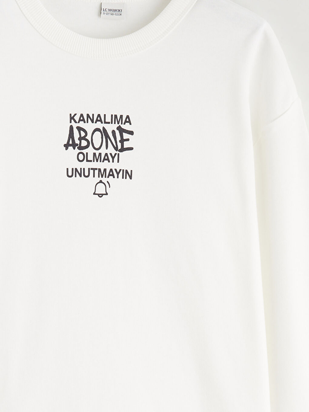 سویشرت پسرانه طرحدار یقه گرد طرح Ecru