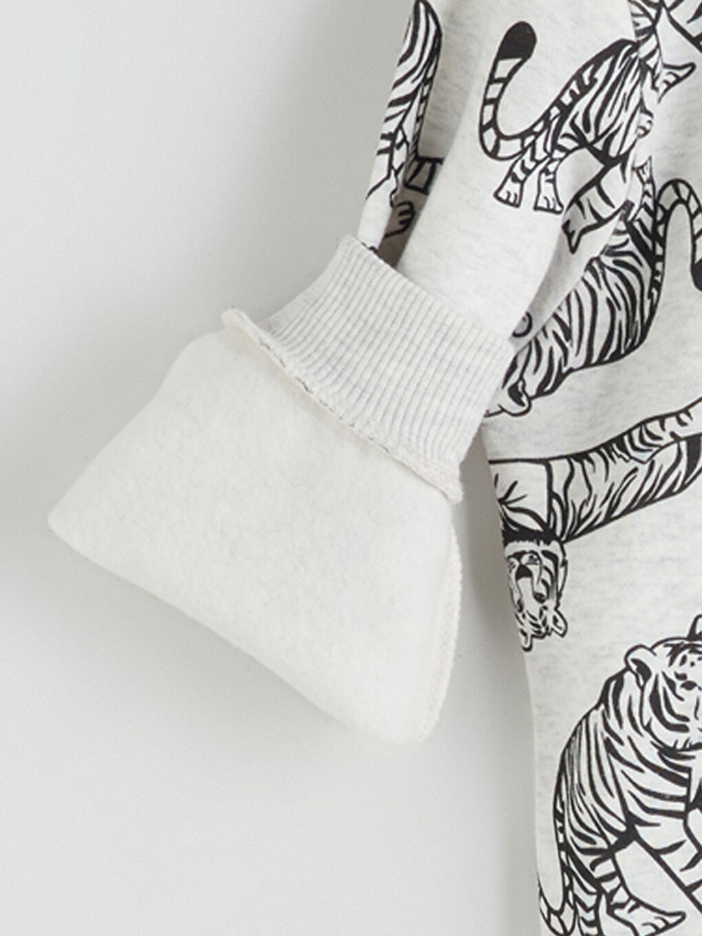 سویشرت بچهگانه آستین بلند، جنس پارچه نخی، طرح چاپی دارد.