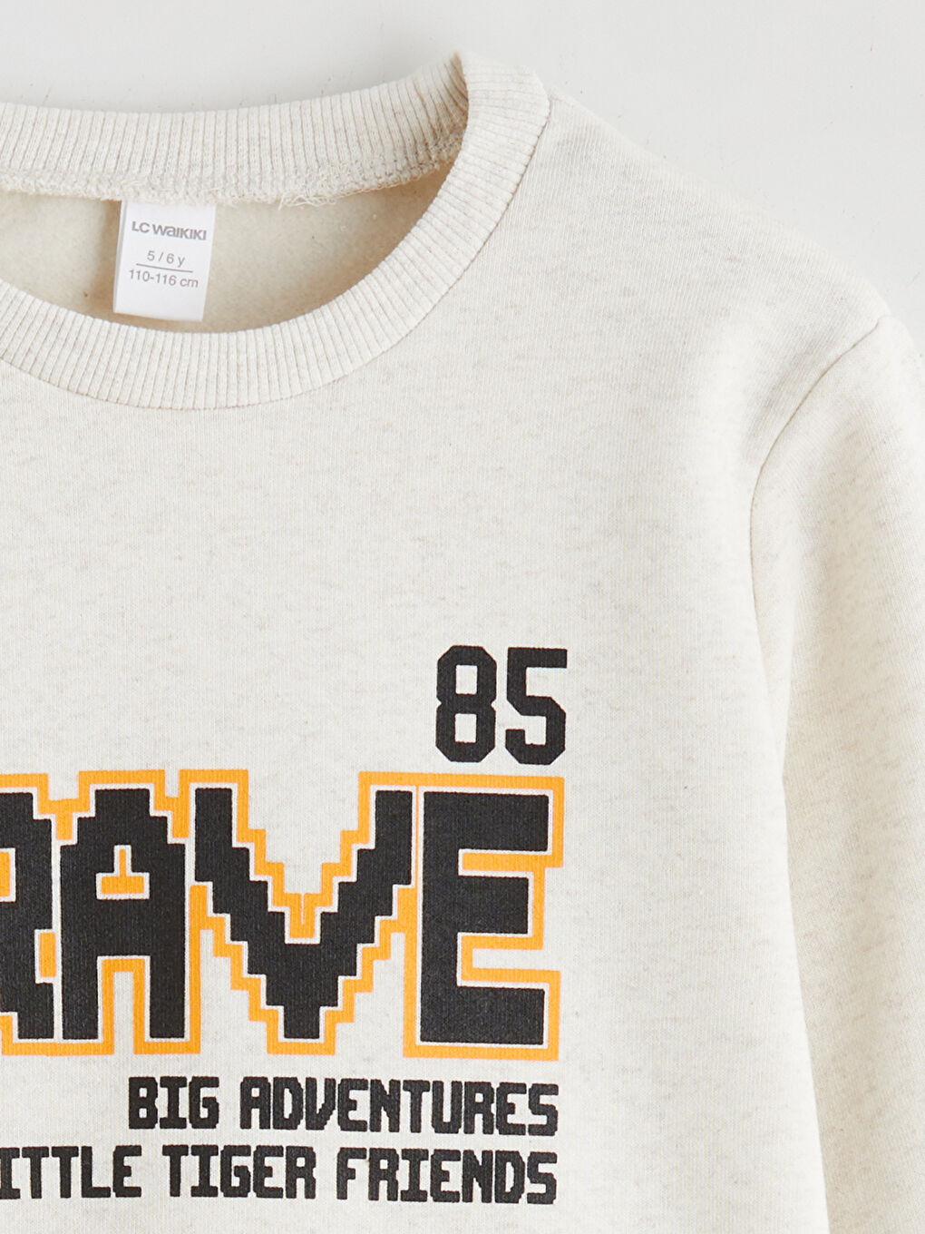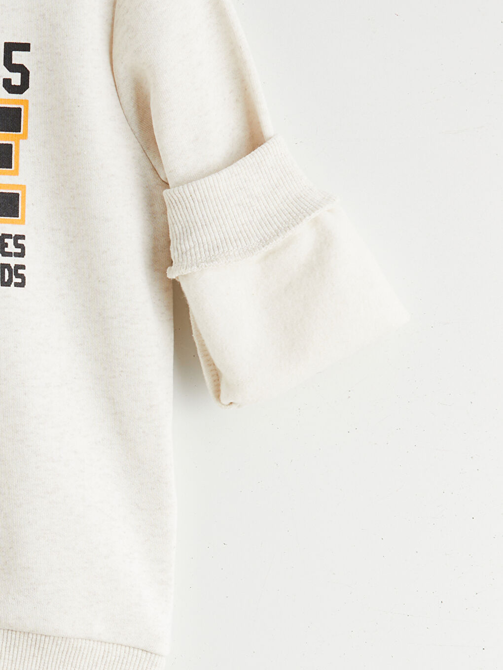 سویشرت ضخیم پسرانه یقه گرد سفید طرح دار