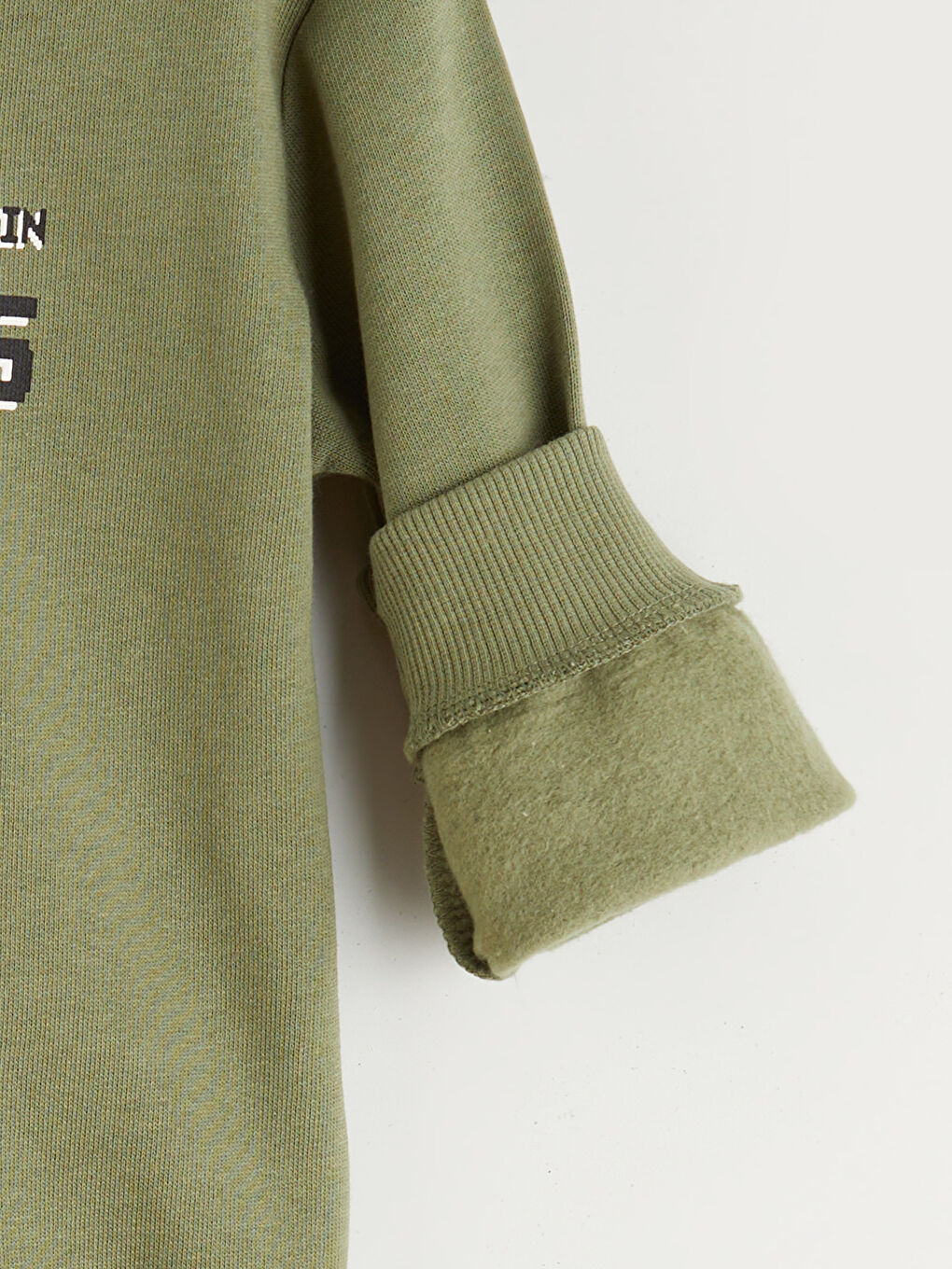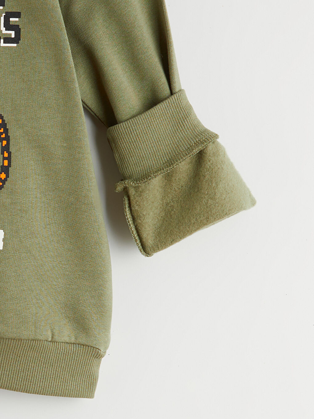 سویشرت ضخیم پسرانه یقه گرد خاکی چاپ شده