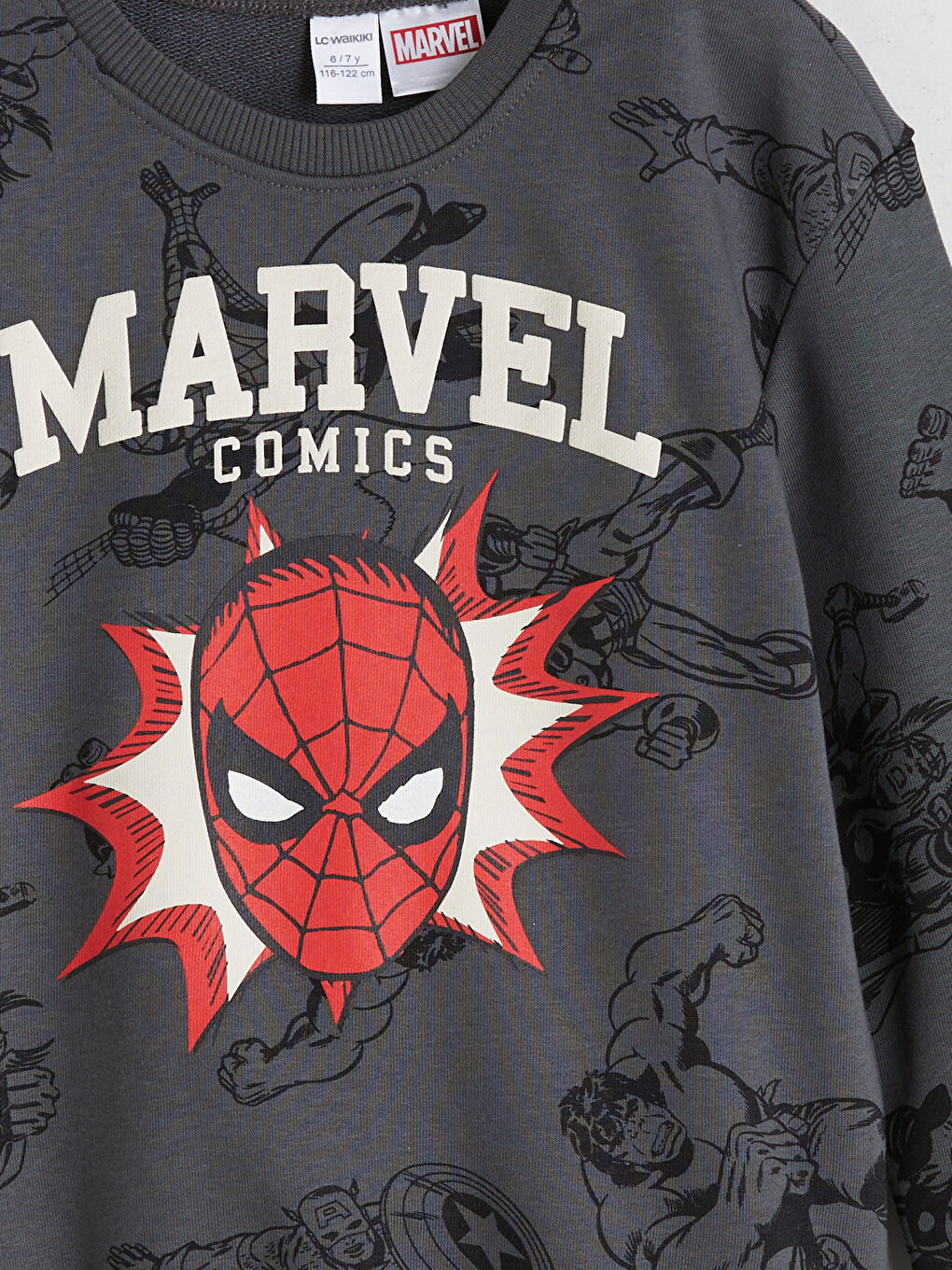 سویشرت پسرانه طرح مرد عنکبوتی یقه گرد خاکستری