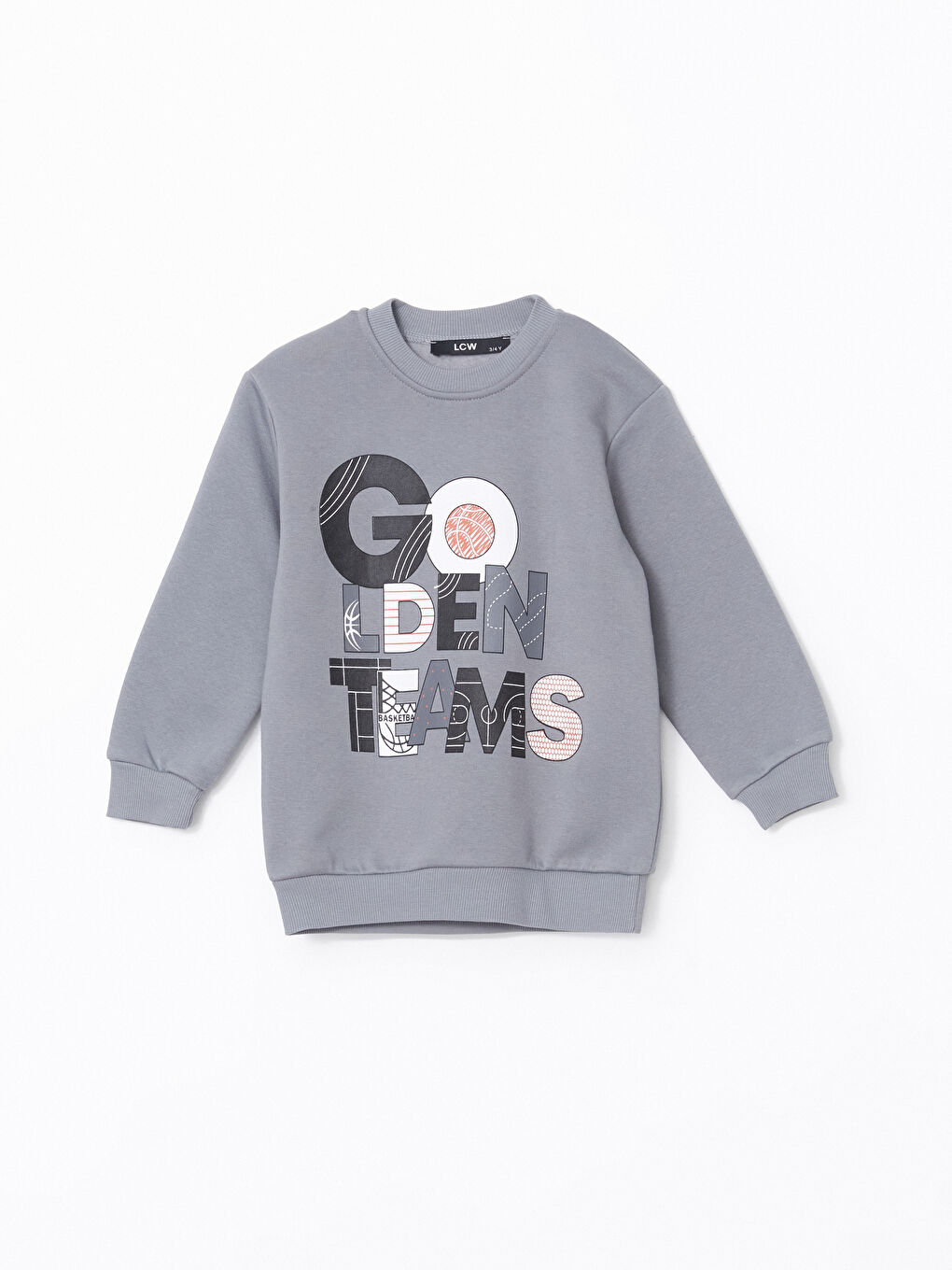 سویشرت پسرانه طرح‌دار یقه گرد آنتراسیت