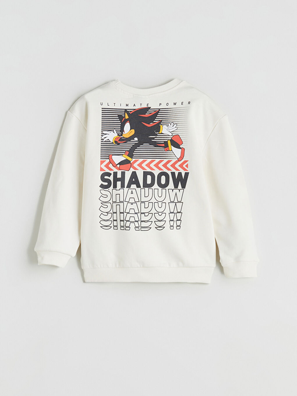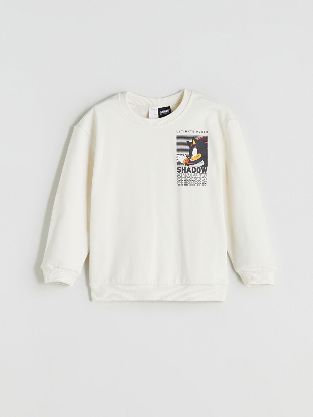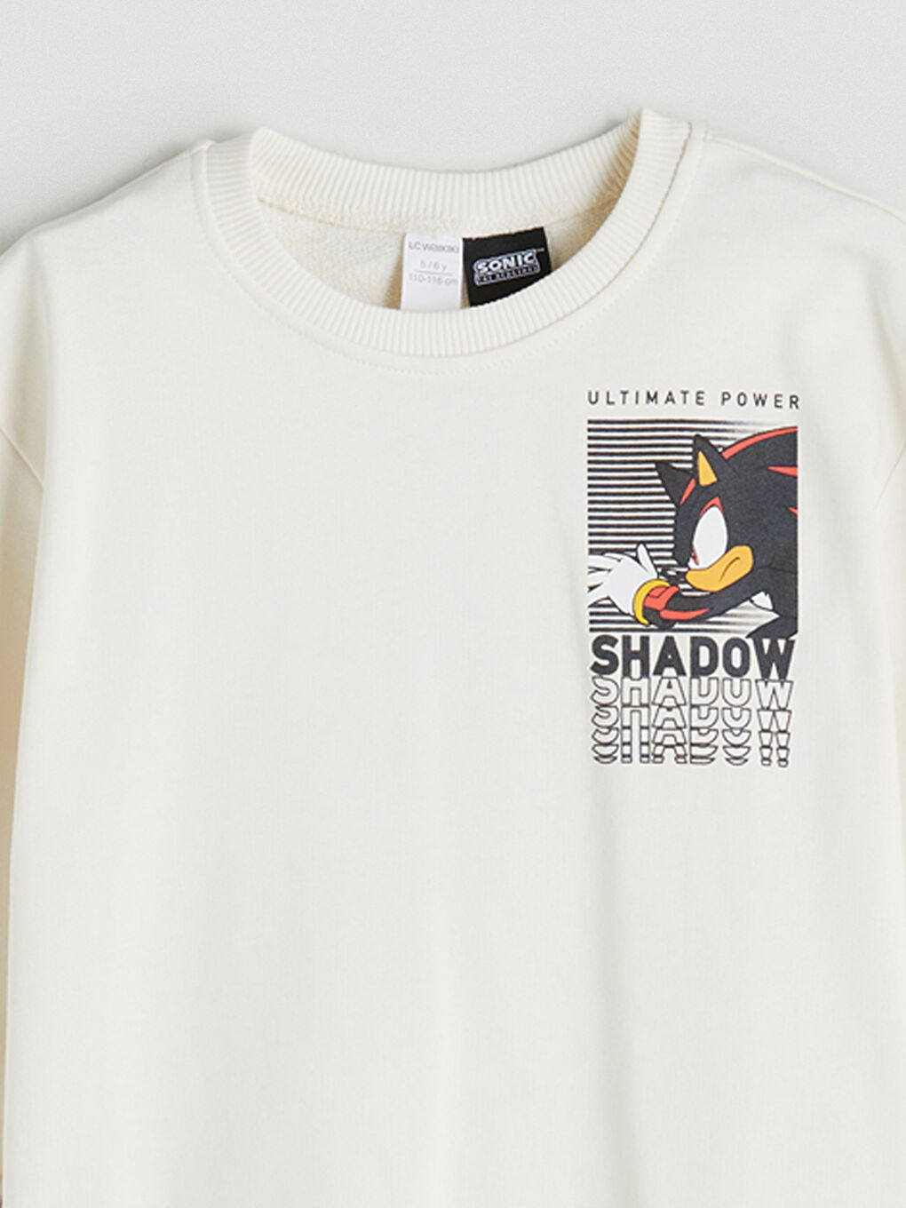 سویشرت پسرانه یقه خدمه با مجوز سونیک از پارچه 3 نخی متوسط وزن، با آستین های بلند و پشتی چاپ شده. آستین و سجاف آجدار.