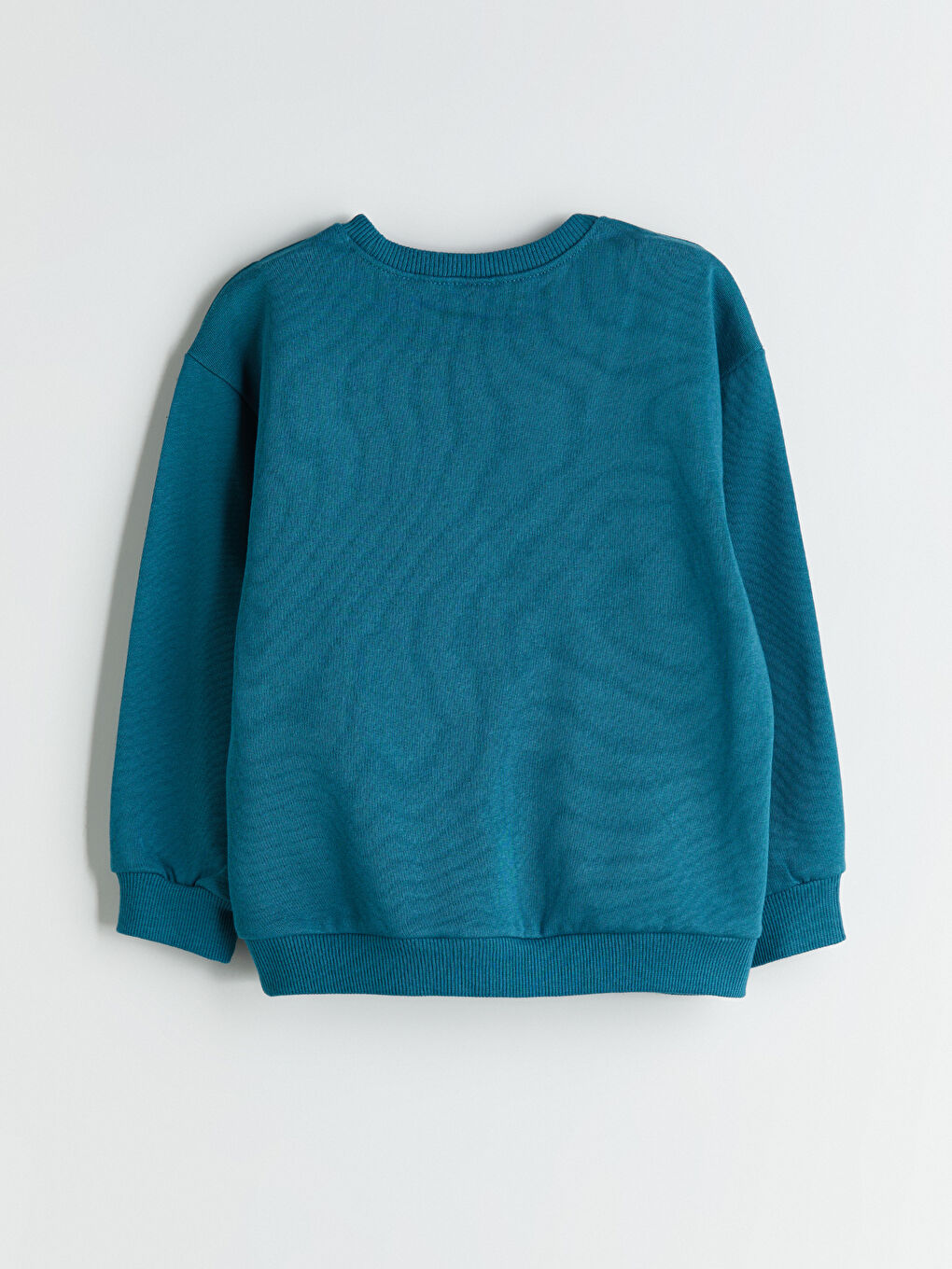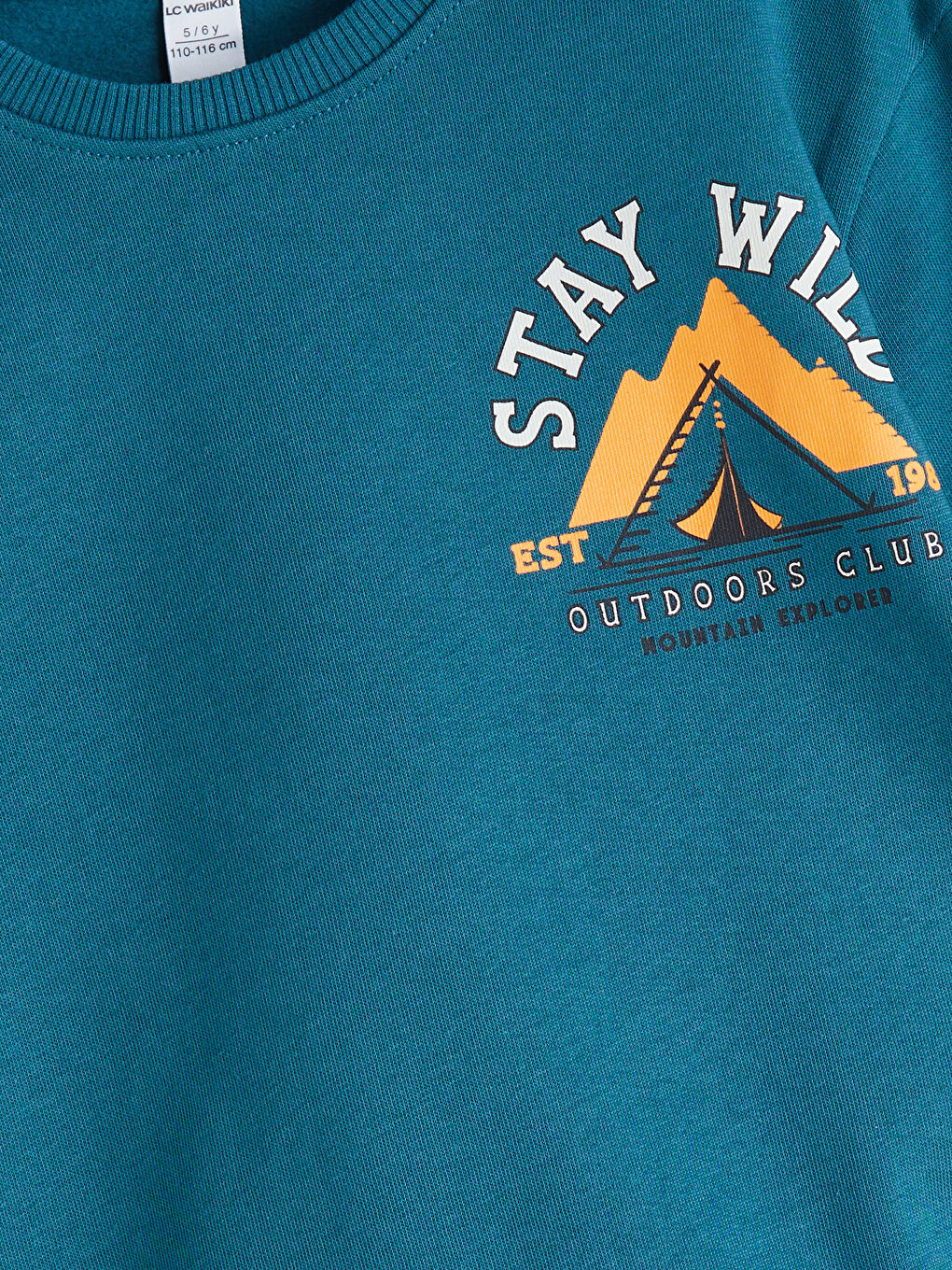 پیراهن آستین بلند پسرانه چاپ شده، یقه خدمه، از پارچه ضخیم برآمده 3 نخ.