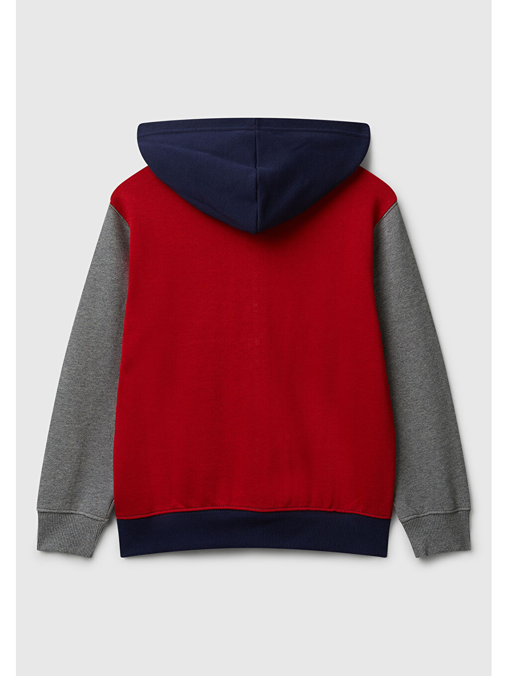 سوئیشرت زیپ دار با لوگوی جلویی قرمز-خاکستری پسرانه قرمز