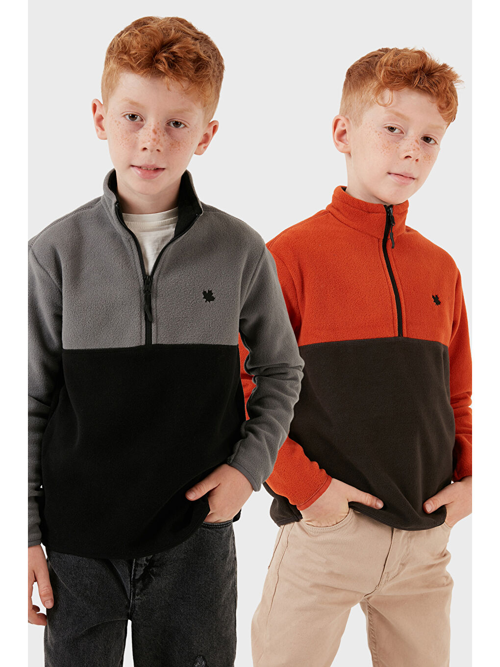 یقه ایستاده رنگی نیم زیپ خاکستری بافت نرم، بسته ۲ عددی، مدل Polar 5905004S2