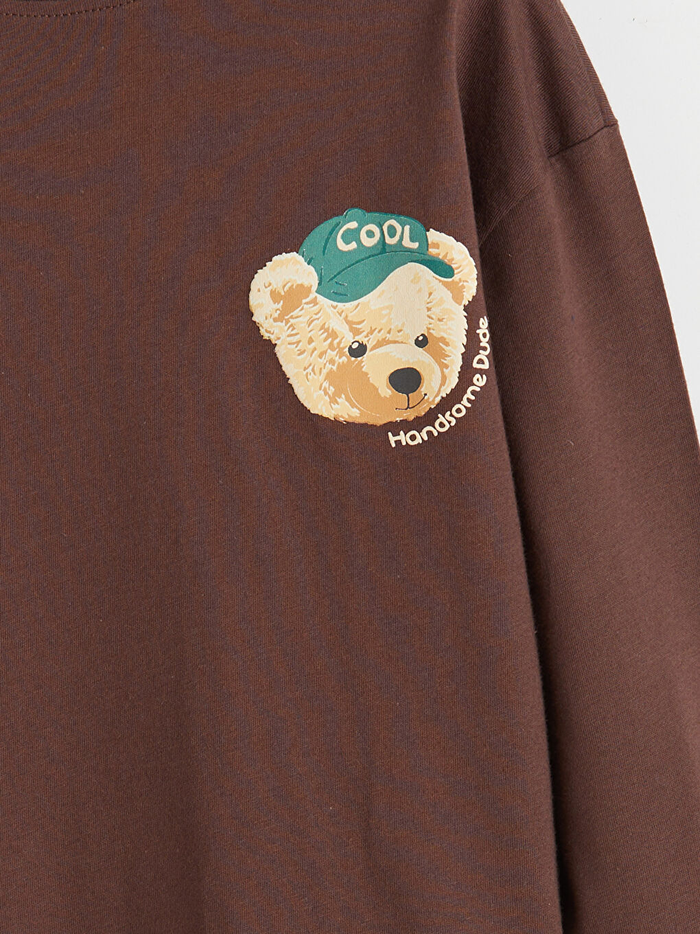 این تیشرت پسرانه یقه گرد و آستین بلند است و طرح خرس عروسکی روی سینه آن خودنمایی میکند.