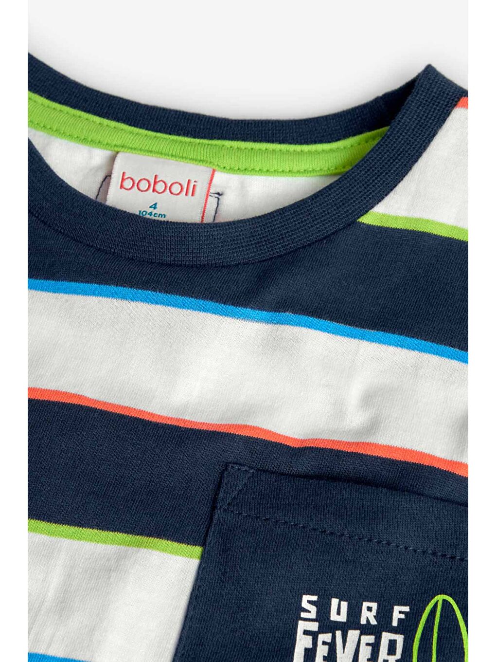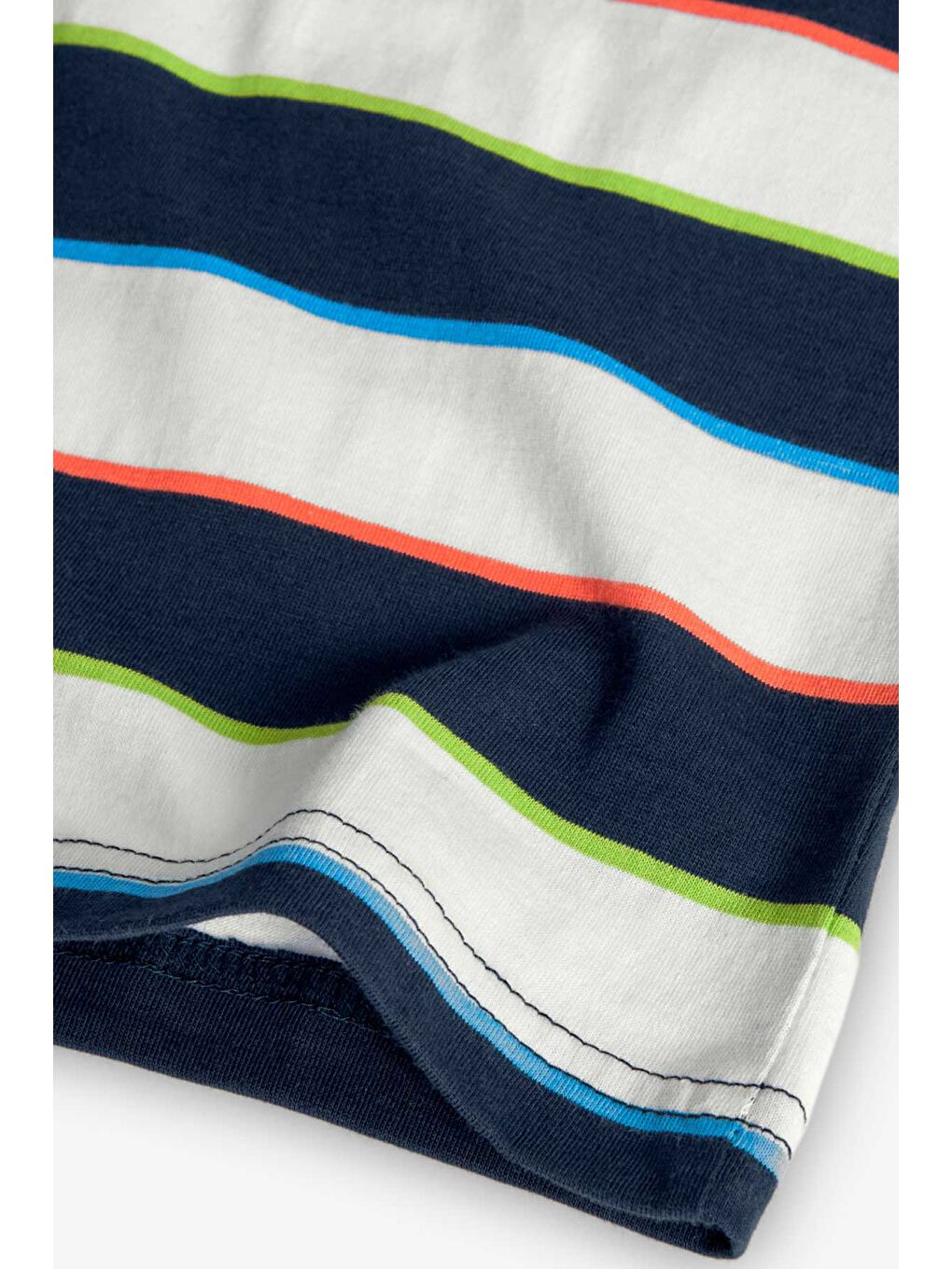 این تیشرت بافتنی که برای پسران طراحی شده است، دارای طرح راهراه آبی، سبز و قرمز است و برای بهار و تابستان ایدهآل است. پارچه نرم و قابل تنفس، کودک شما را در تمام طول سال راحت نگه میدارد. این تیشرت دارای یک جیب گلدوزی شده با تم موجسواری است. این تیشرت که برای طیف وسیعی از سنین مناسب است، در سایزهای 4 تا 16 سال موجود است. برای داشتن ظاهری راحت و رنگارنگ، آن را با شلوارک یا شلوارک ست کنید.