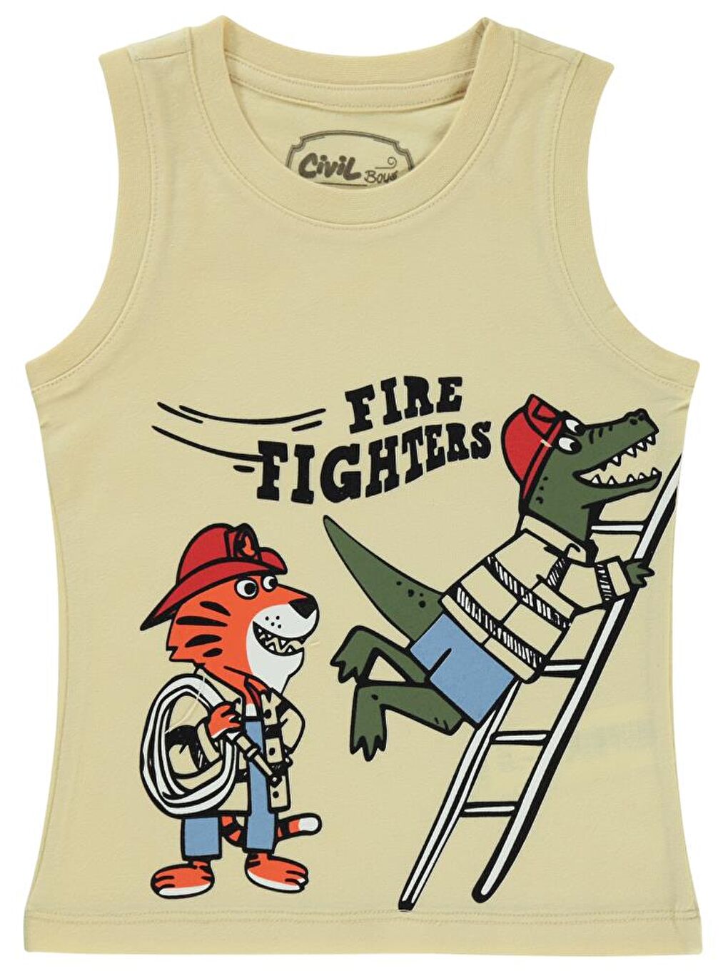 تیشرت آستین کوتاه طرح آتشنشانان مدنی پسرانه – بژ 2-3 سال