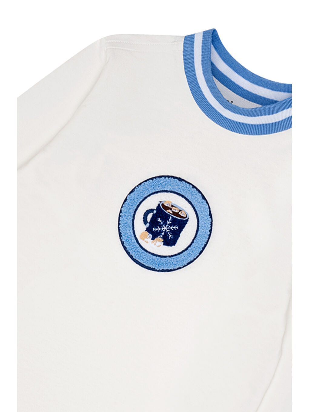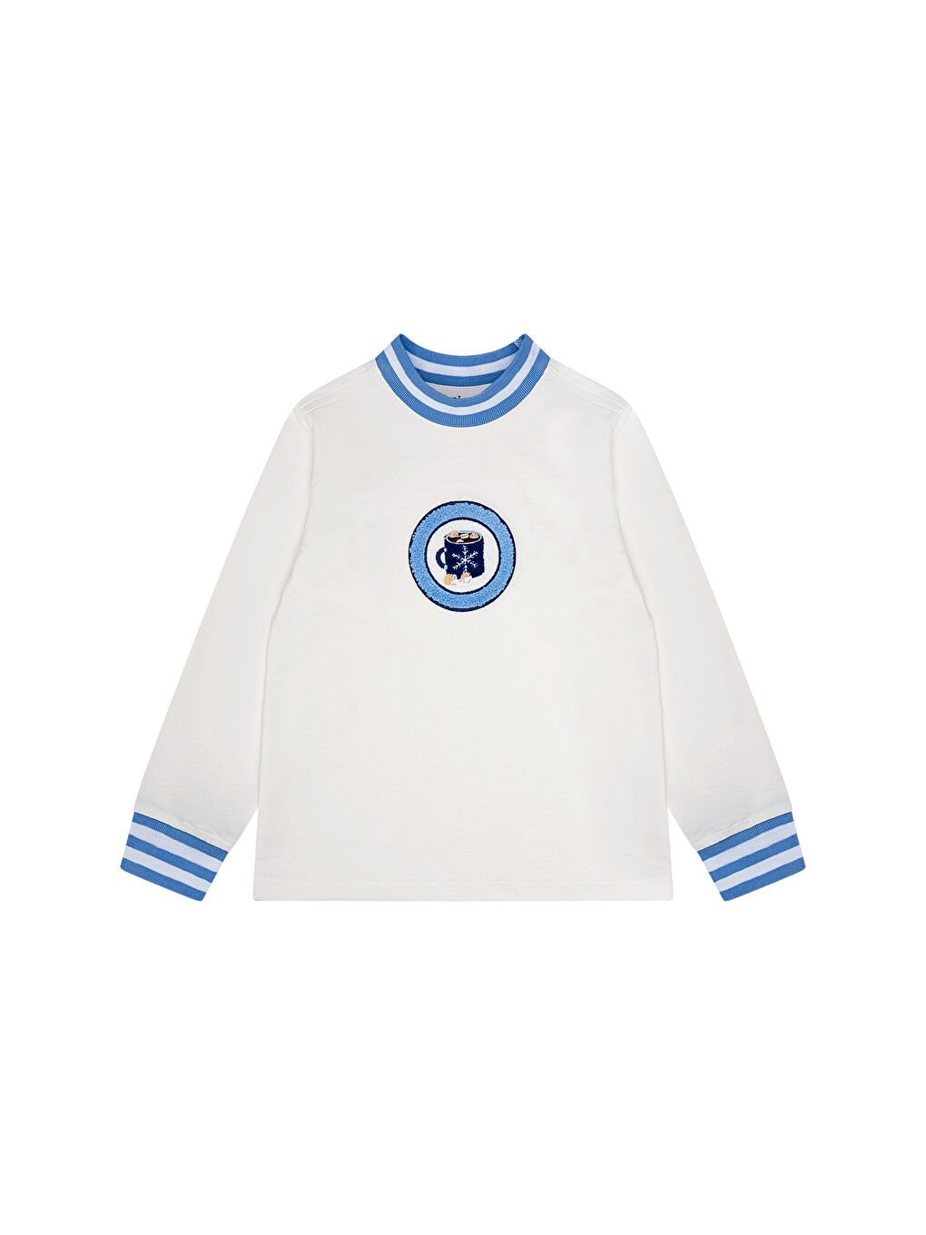 تیشرت آستین بلند گلدوزی شده با رنگ کرم