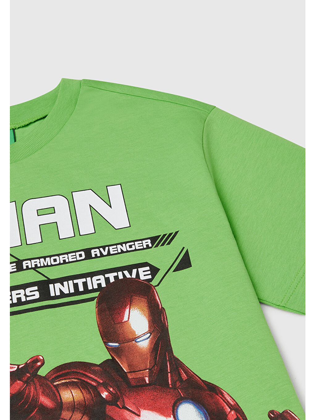 تی شرت پسرانه طرح قهرمان مارول سبز پسته ای با برچسب لوگو