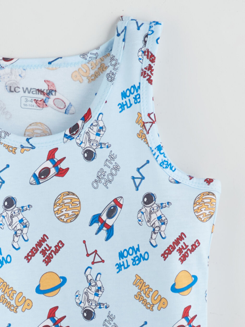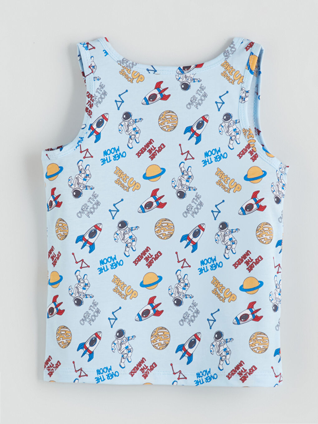 زیرپیراهن پسرانه یقه آبی با چاپ