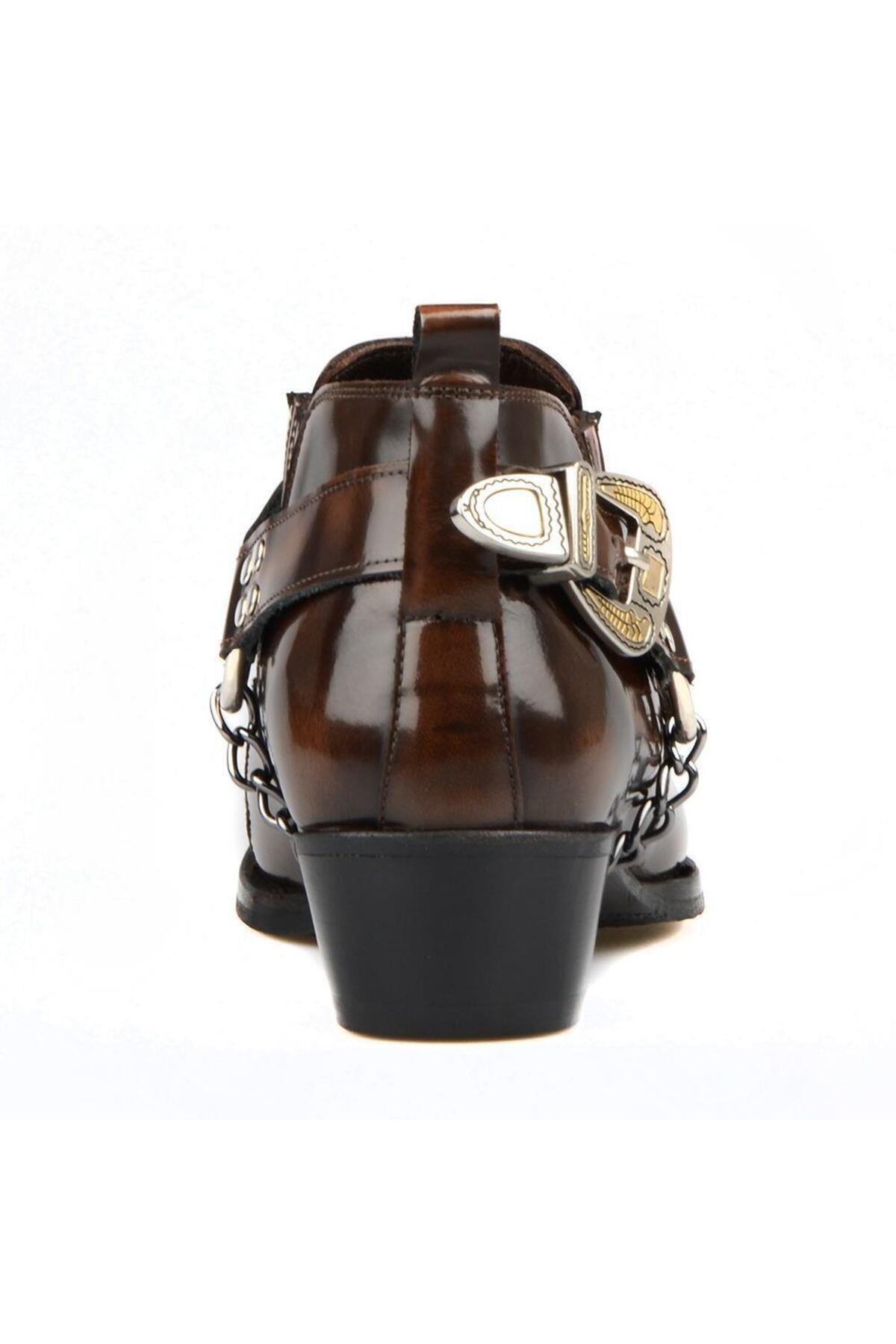 فوت کورت کفش کابویی دوزی شده چرم قهوهای