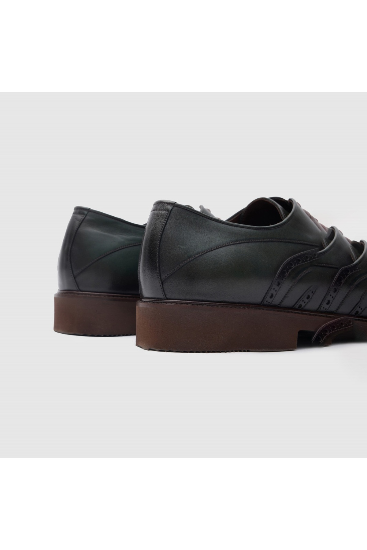 توگو کفش‌های راحتی کلاسیک مردانه چرم اصل گلدوزی شده به رنگ سبز خاکی [052071]